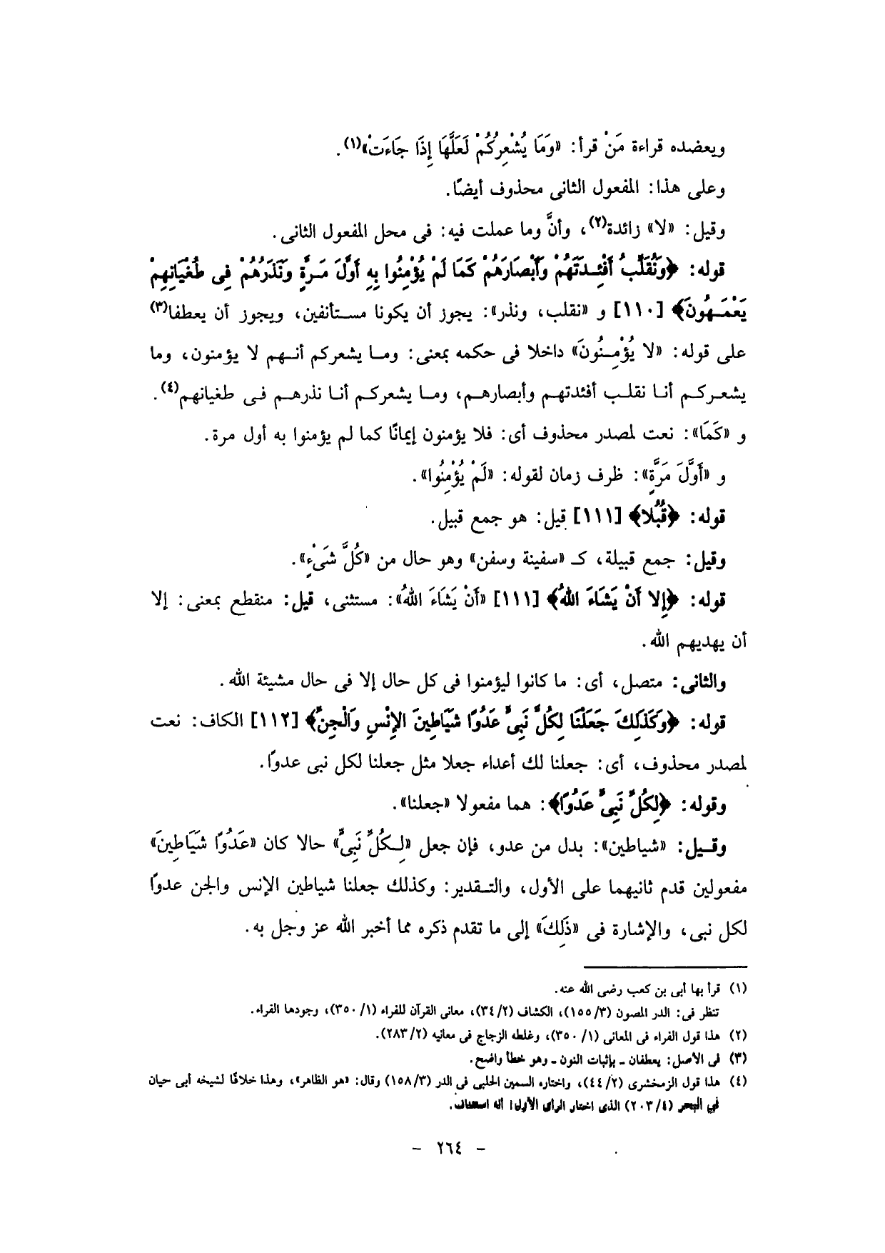 وقيل: (شياطين) : بدل من "عدو"، فإن جعل (لِكُلِّ نَبِيٍّ) حالاً كان (عَدُوًّا شَيَاطِينَ) مفعولين قدم ثانيهما على الأول، والتقدير: وكذلك جعلنا شياطين الإنس والجن عدوًا لكل نبى، والإشارة في "ذَلِكَ ".إلى ما تقدم ذكره مما أخبر الله عز وجل به.