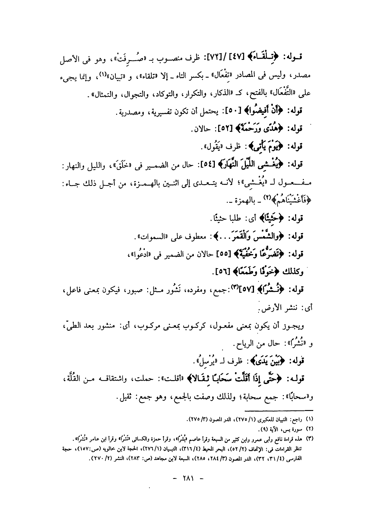 قوله: (نُشُرًا) : جمع، ومفرده، نَشُور مثل: صبور، فيكون بمعنى فاعل،
