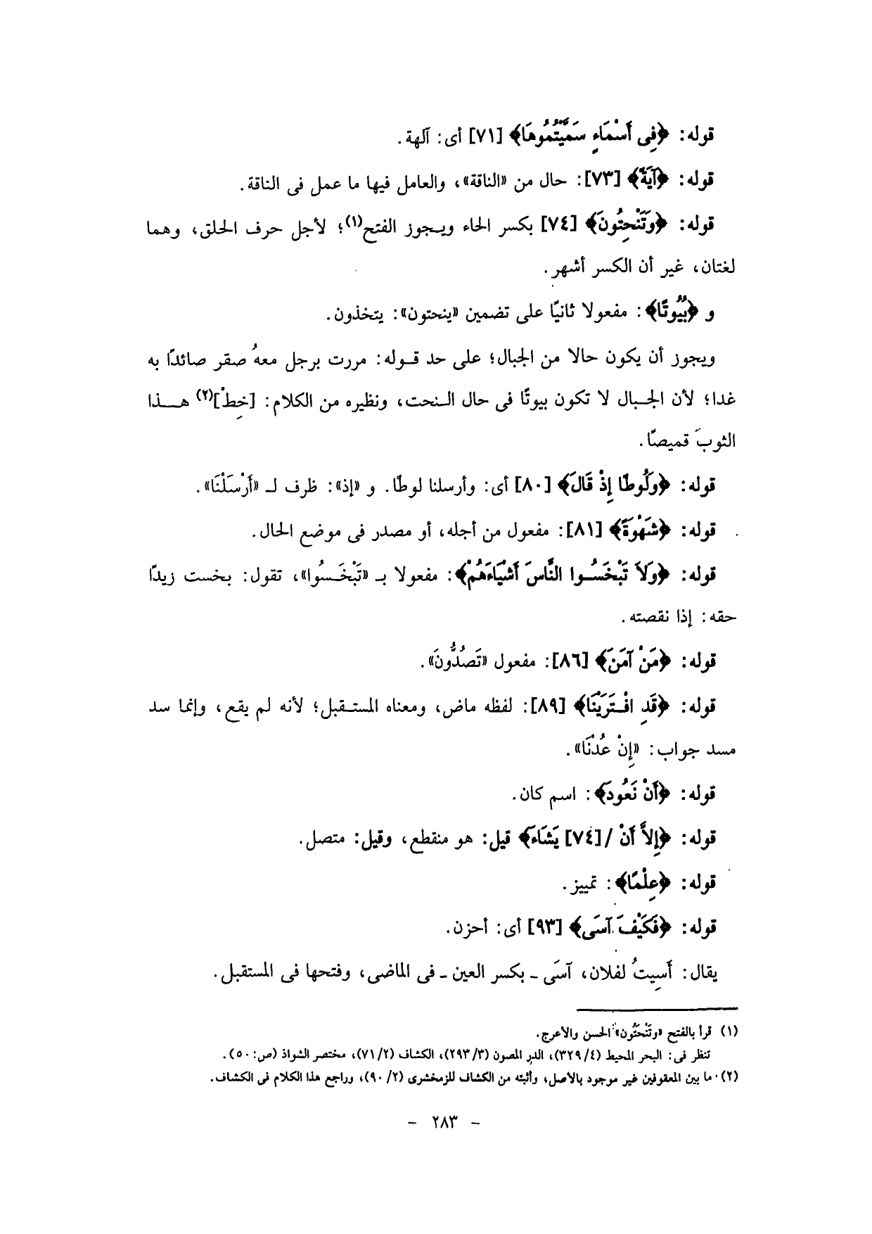 قوله: (وتنْحِتونَ) بكسر الحاء ويجوز الفتح؛ لأجل حرف الحلق، وهما