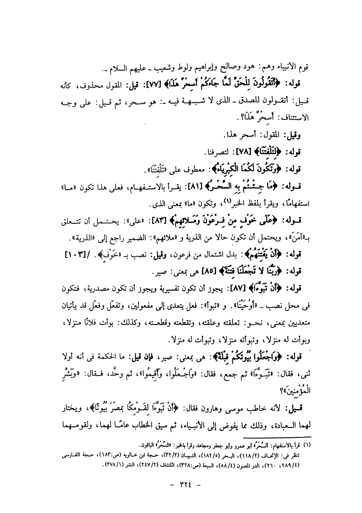 قوله: (أَنْ تَبَوَّءَا) : يجوز أن تكون تفسيرية ويجوز أن تكون مصدرية، فتكون