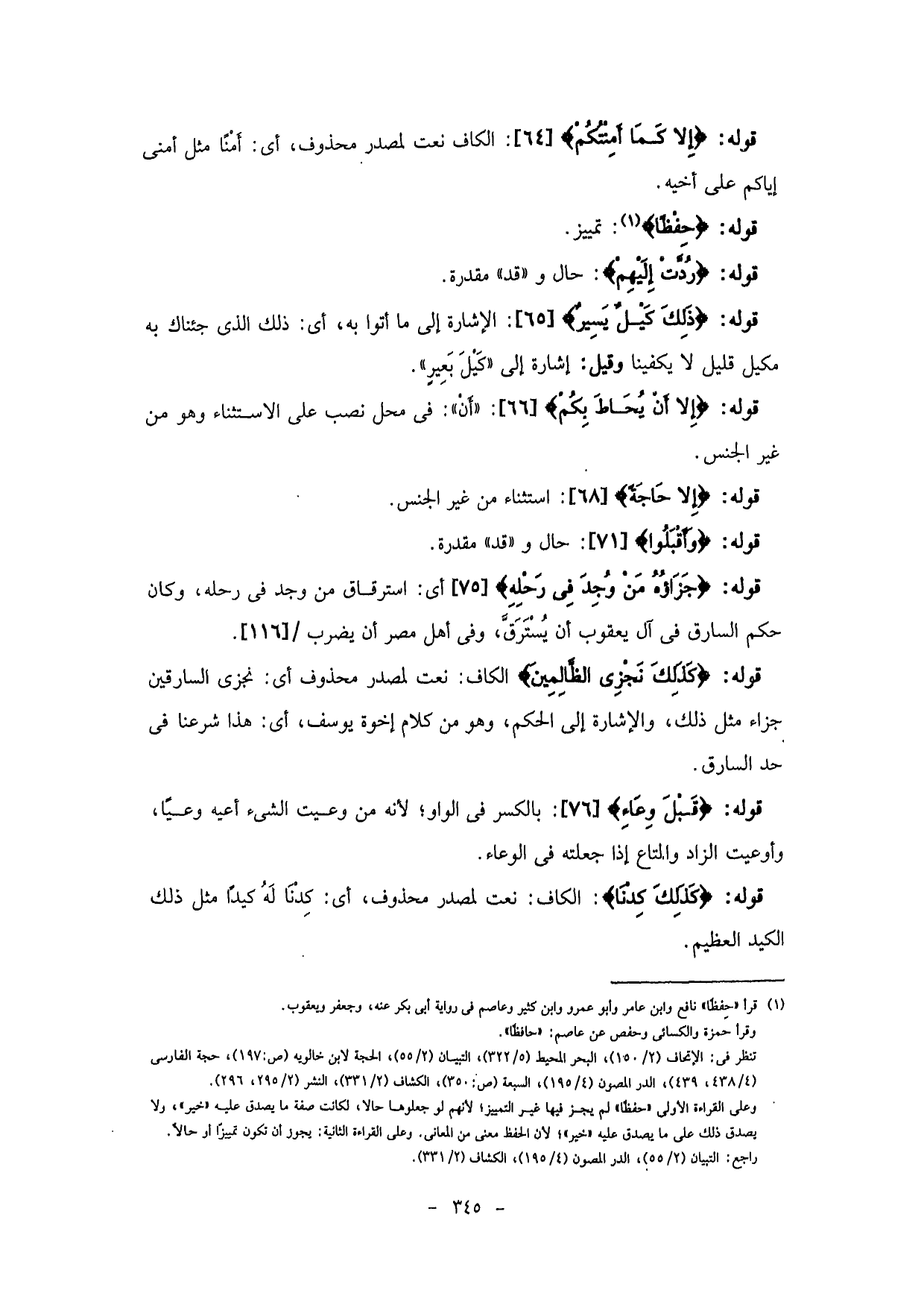 قوله: (إِلَّا كَمَا أَمِنْتُكُمْ) : الكاف نعت لمصدر محذوف، أي: أمْنًا مثل أمني إياكم على أخيه.