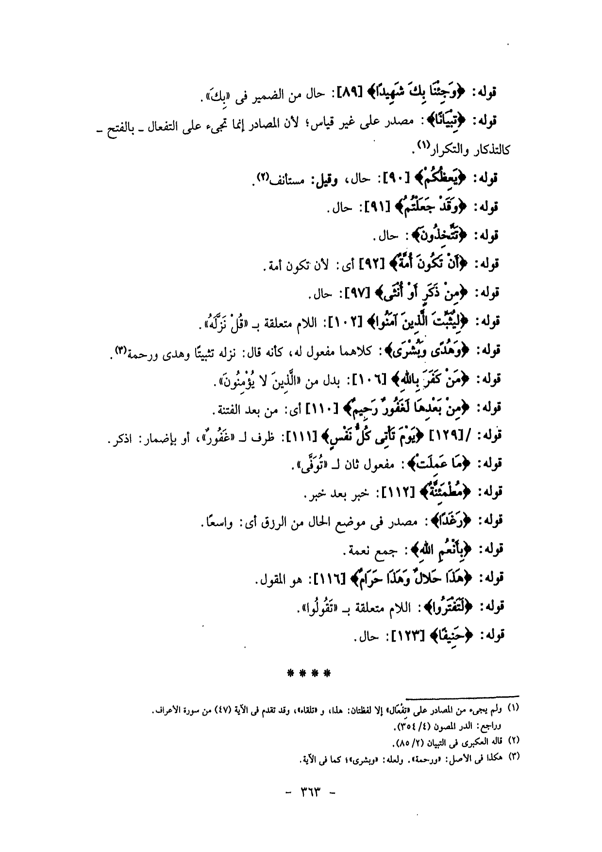 قوله: (تِبْيَانًا) : مصدر على غير قياس؛ لأن المصادر إنما تجيء على التفعال - بالفتح - كالتذكار والتكرار.
