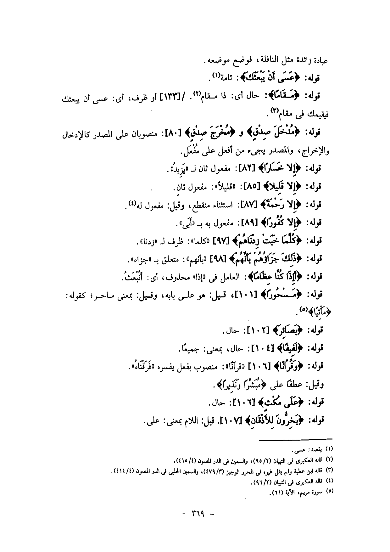قوله: (مَقَامًا) : حال أي: ذا مقام، أو ظرف، أي: عسى أن يبعثك ليقيمك في مقام.