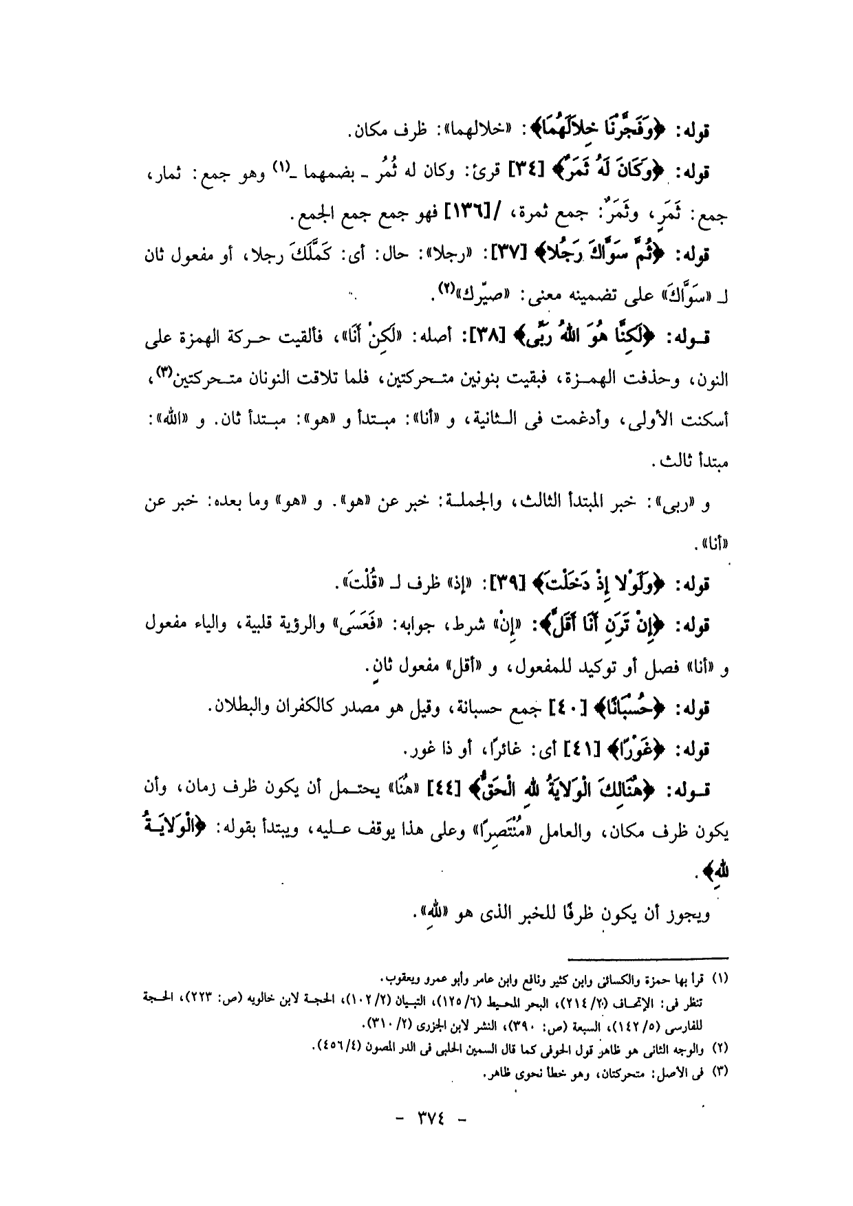 النون، وحذفت الهمزة، فبقيت بنونين متحركتين، فلما تلاقت النونان متحركتين، أسكنت الأولى، وأدغمت في الثانية، و (أنا) : مبتدأ و (هو) : مبتدأ ثان. و (الله) : مبتدأ ثالث.