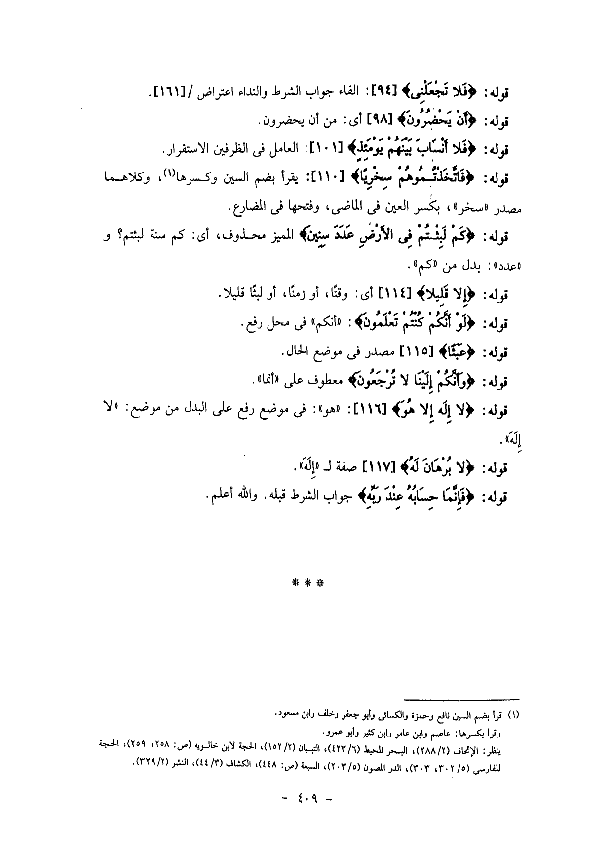 قوله: (فَاتَّخَذْتُمُوهُمْ سِخْرِيًّا) :