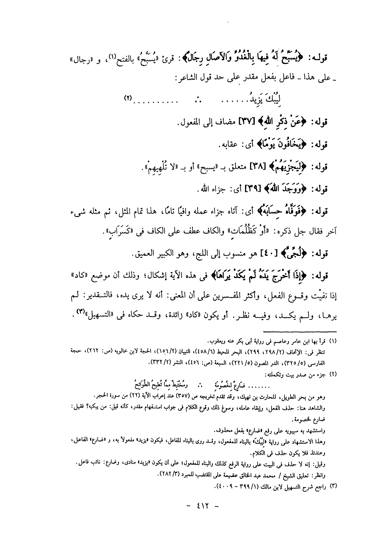 قوله: (لِيَجْزِيَهُمُ) متعلق بـ " يسبح " أو ب " لا تُلْهِيهِمْ ".