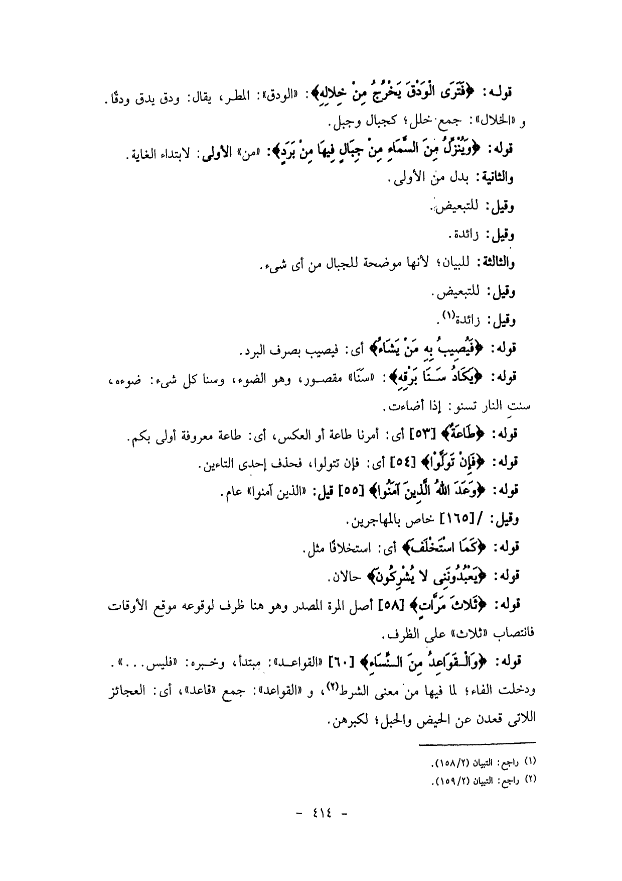قوله: (فَتَرَى الْوَدْقَ يَخْرُجُ مِنْ خِلَالِهِ) :