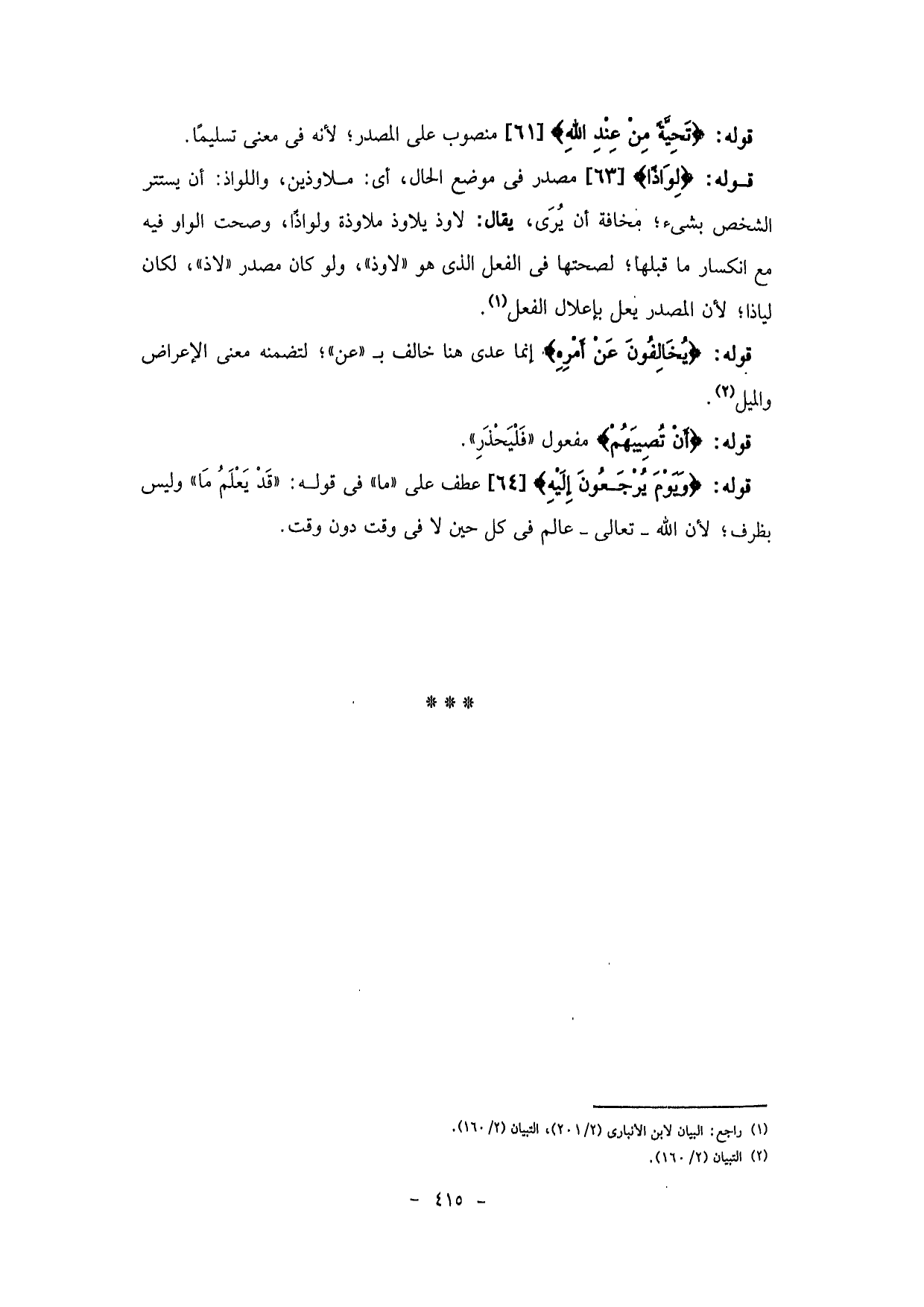 قوله: (أَنْ تُصِيبَهُمْ) : مفعول "فَلْيَحْذَرِ".