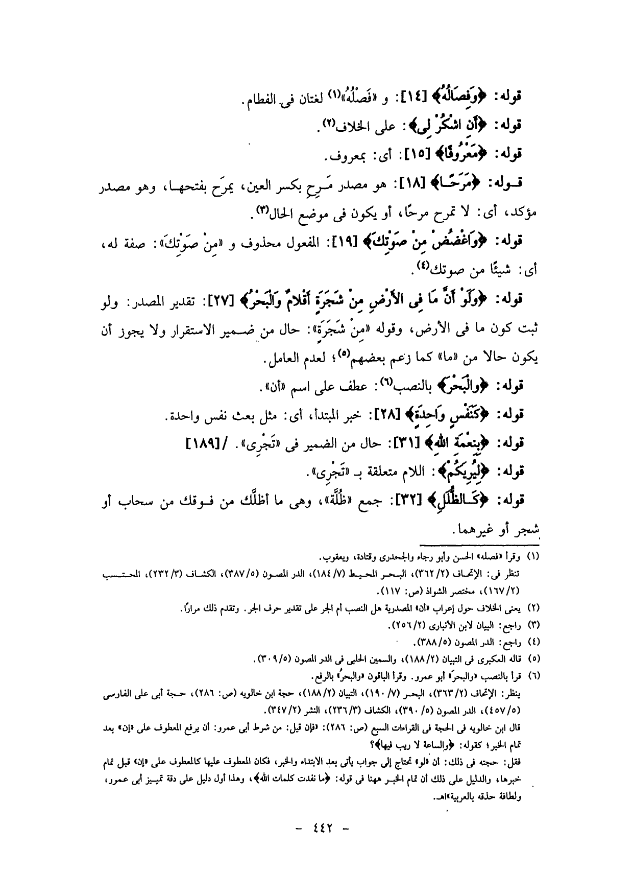 تقدير المصدر: ولو ثبت كون ما في الأرض، وقوله (مِنْ شَجَرَةٍ) : حال من ضمير الاستقرار ولا يجوز أن يكون حالاً من "ما" كما زغم بعضهم؛ لعدم العامل.
