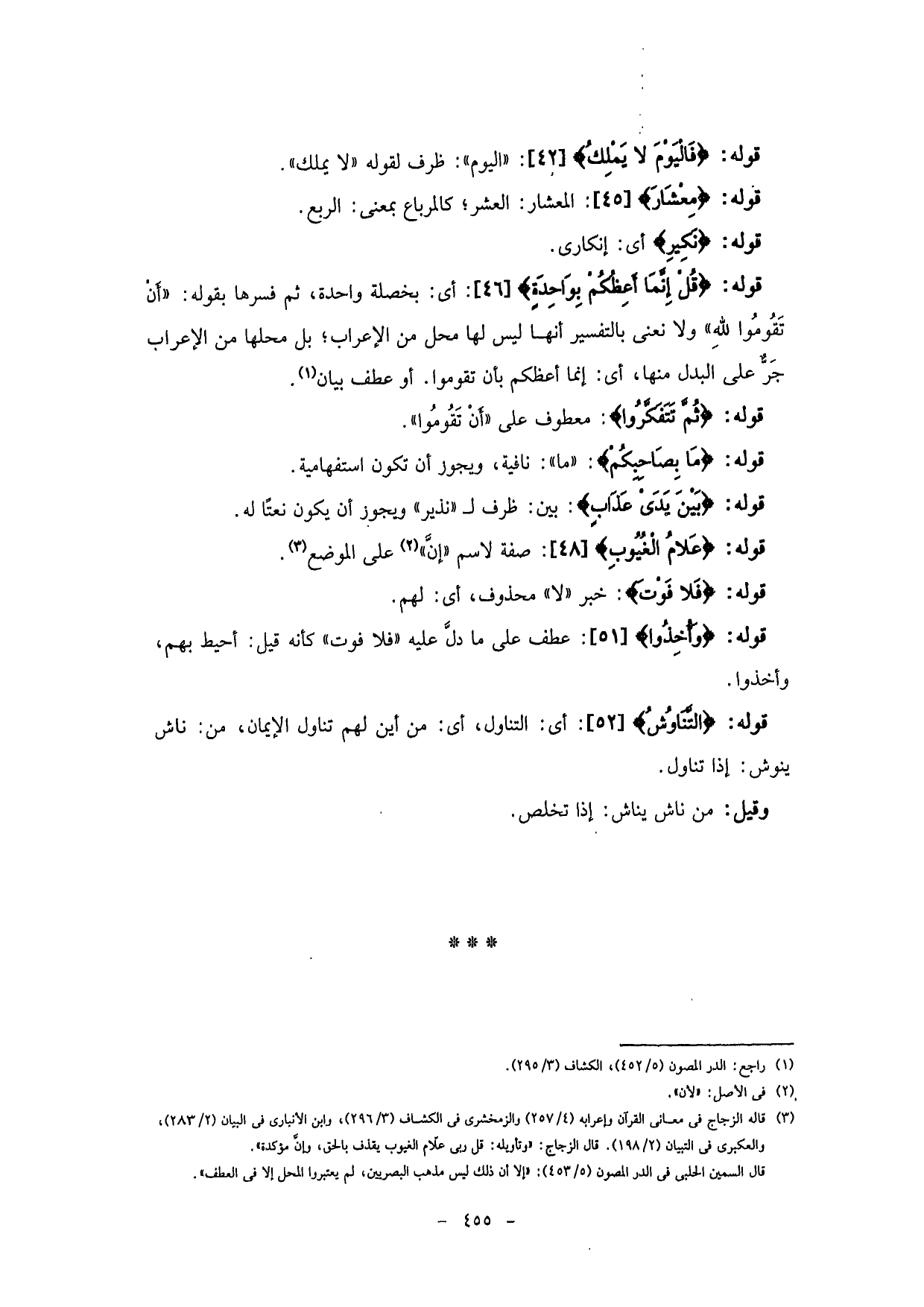 قوله: (ثُمَّ تَتَفَكَّرُوا) : معطوف على (أَنْ تَقُومُوا) .
