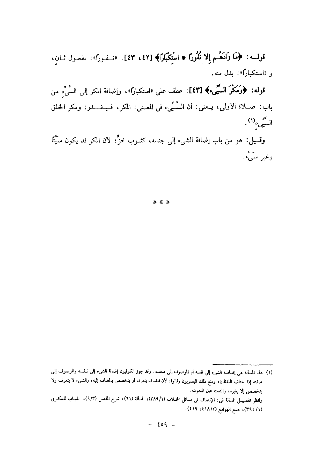 عطف على "استكبارًا"، وإضافة المكر إلى السَّيِّئِ من باب: صلاة الأولى، يعنى: أن السَّيِّئَ في المعنى: المكر، فيقدر: ومكر الخلق السَّيِّئِ.