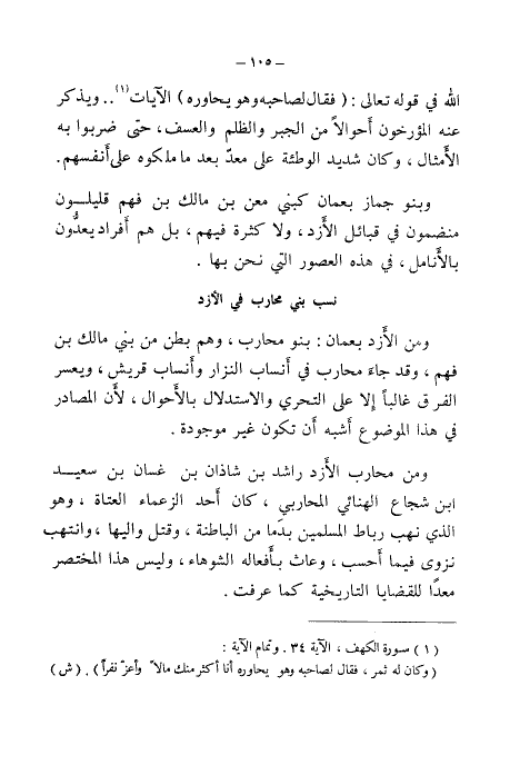 الله في قوله تعالى: (فَقَالَ لِصَاحِبِهِ وَهُوَ يُحَاوِرُهُ) الآيات (¬١) .. ويذكر عنه المؤرخون أحوالًا من الجبر والظلم والعسف، حتى ضربوا به الأمثال، وكان شديد الوطئة على معد بعد ما ملكوه على أنفسهم.