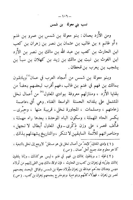 (¬٢) قوله: (ويلتقون بمالك بن فهم في غنم) ليس هو كذلك، وإنما يلتقون بمالك وذريته في زهران بن كعب بن الحارث، فإن أولاد مالك ومن التقي إليهم من أولاد دوس وعدثان جدّ هم عبد الله بن زهران وأولاد معولة بن شمس وقبائل اليحمد يجمعهم نصر بن زهران، فهولاء كلهم وبنو عبرة وبنو مفرج يجمعهم زهران بن كعب. (ص)