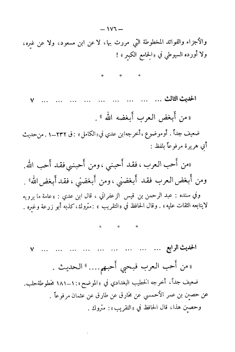 (من أحب العرب، فقد أحبني، ومن أحبني فقد أحب الله. ومن أبغض العرب فقد أبغضني، ومن أبغضني، فقد أبغض الله).