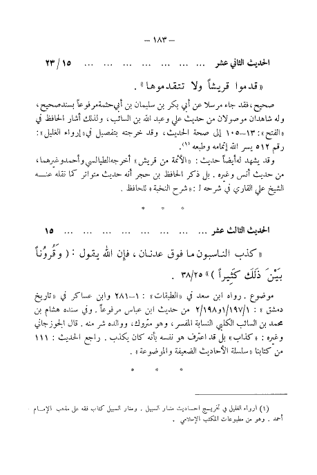 (¬١) إرواء الغليل في تخريج أحاديث منار السبيل، ومنار السبيل كتاب فقه على مذهب الإمام أحمد. وهو من مطبوعات المكتب الإسلامي.