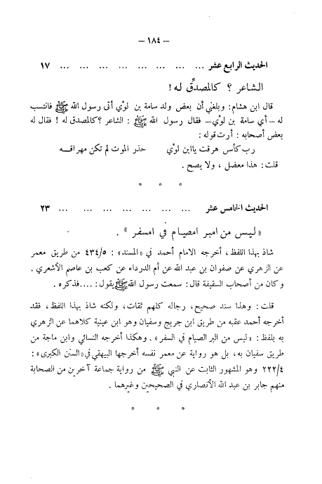 شاذ بهذا اللفظ، أخرجه الإمام أحمد في " (المسند): ٥/ ٤٣٤ من طريق معمر عن الزهري عن صفوان بن عبدالله عن أم الدرداء عن كعب بن عاصم الأشعري. وكان من أصحاب السقيفة قال: سمعت رسول الله صلى الله عليه وسلم يقول: ... فذكره.