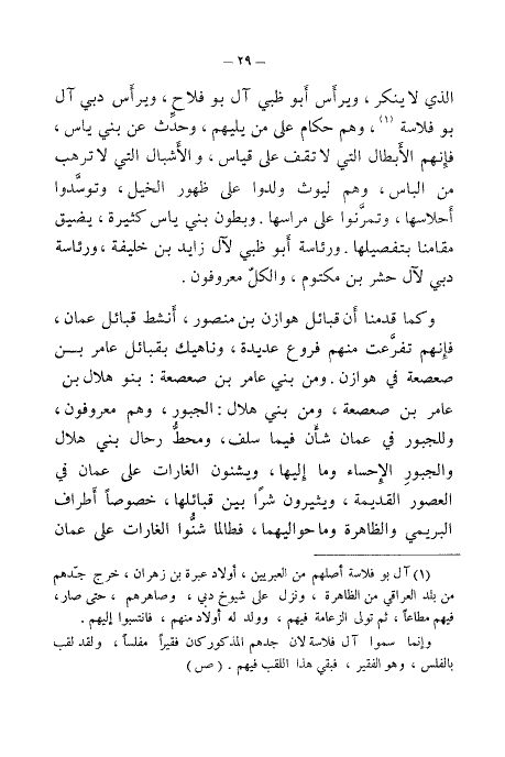 (¬١) آل بو فلاسة أصلهم من العبريين، أولاد عبرة بن زهران، خرج جدهم من بلد العراقي من الظاهرة، ونزل على شيوخ دبي، وصاهرهم حتى صار فيهم مطاعا، ثم تولى الزعامة فيهم، وولد له أولاد منهم، فانتسبوا إليهم.