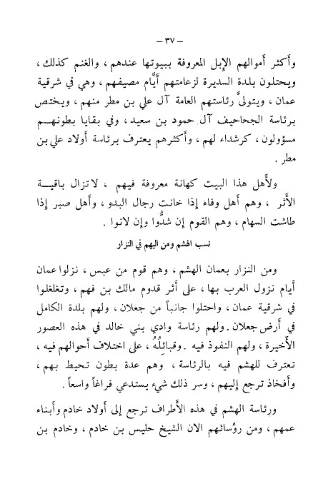 ولأهل هذا البيت كهانة معروفة فيهم، لاتزال باقية الأثر، وهم أهل وفاء إذا خانت البدو، وأهل صبر إذا طاشت السهام، وهم القوم أن شدوا وأن لانوا.