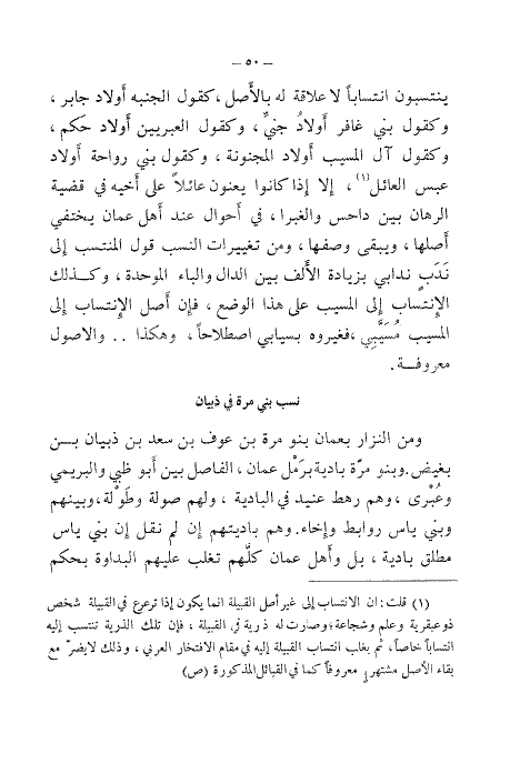 (¬١) قلت: إن الانتساب إلى غير أصل القبيلة إنما يكون إذا ترعرع في القبيلة شخص ذو عبقرية وعلم وشجاعة، وصارت له ذرية في القبيلة، فإن تلك الذرية تنتسب إليه انتسابا خاصا، ثم يغلب انتساب القبيلة إليه في مقام الافتخار العربي، وذلك لا يضر مع بقاء الأصل مشتهرا معروفا كما في القبائل المذكورة. (ص)