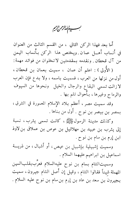 أما بعد فهذا الركن الثاني، من القسم الثالث من العنوان في أنساب أهل عمان.