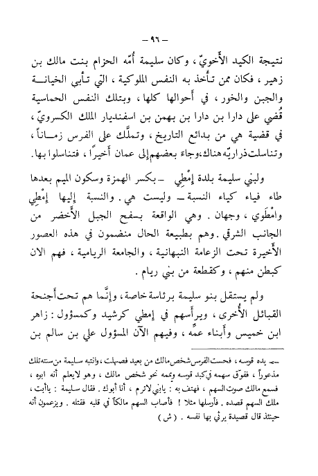 نتيجة الكيد الأخوي، وكان سليمة أمه الحزام بنت مالك بن زهير، فكان ممن تأخذ به النفس الملوكية، التي تأبى الخيانة وجبن والخور، في أحوالها كلها، وبتلك النفس الحماسية قضي على دارا بن دارا بن بهمن بن اسفنديار الملك الكسوري، في قضية هي من بدائع التاريخ، وتملك على الفرس زمانًا، وتناسلت ذراريه هناك، وجاء بعضهم إلى عمان أخيرًا، فتناسلوا بها.