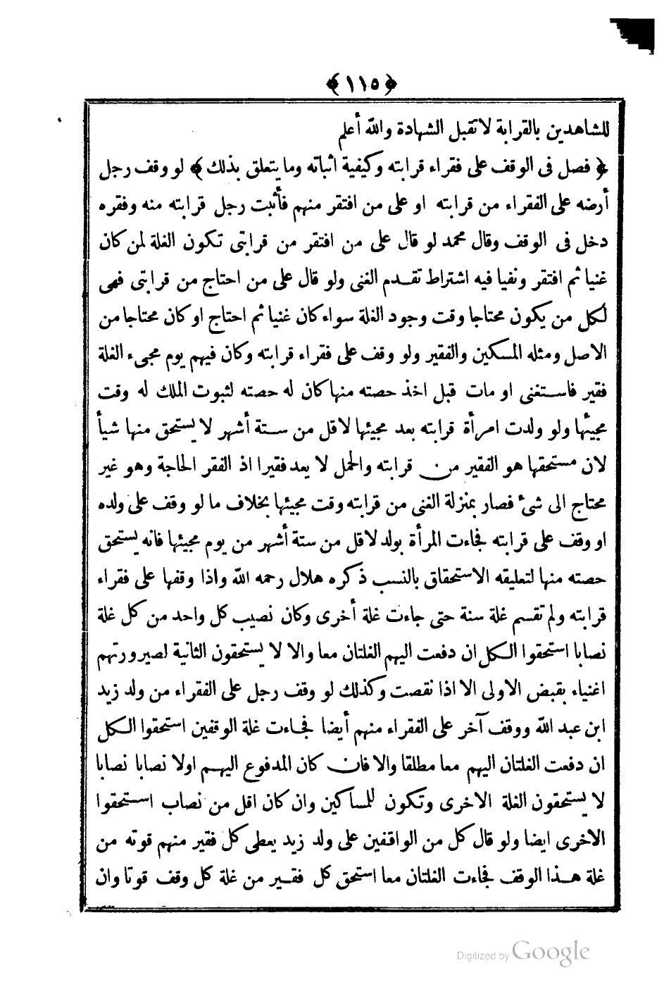 [فصل في الوقف على فقراء قرابته وكيفيه إثباته وما بتعلق بذلك]