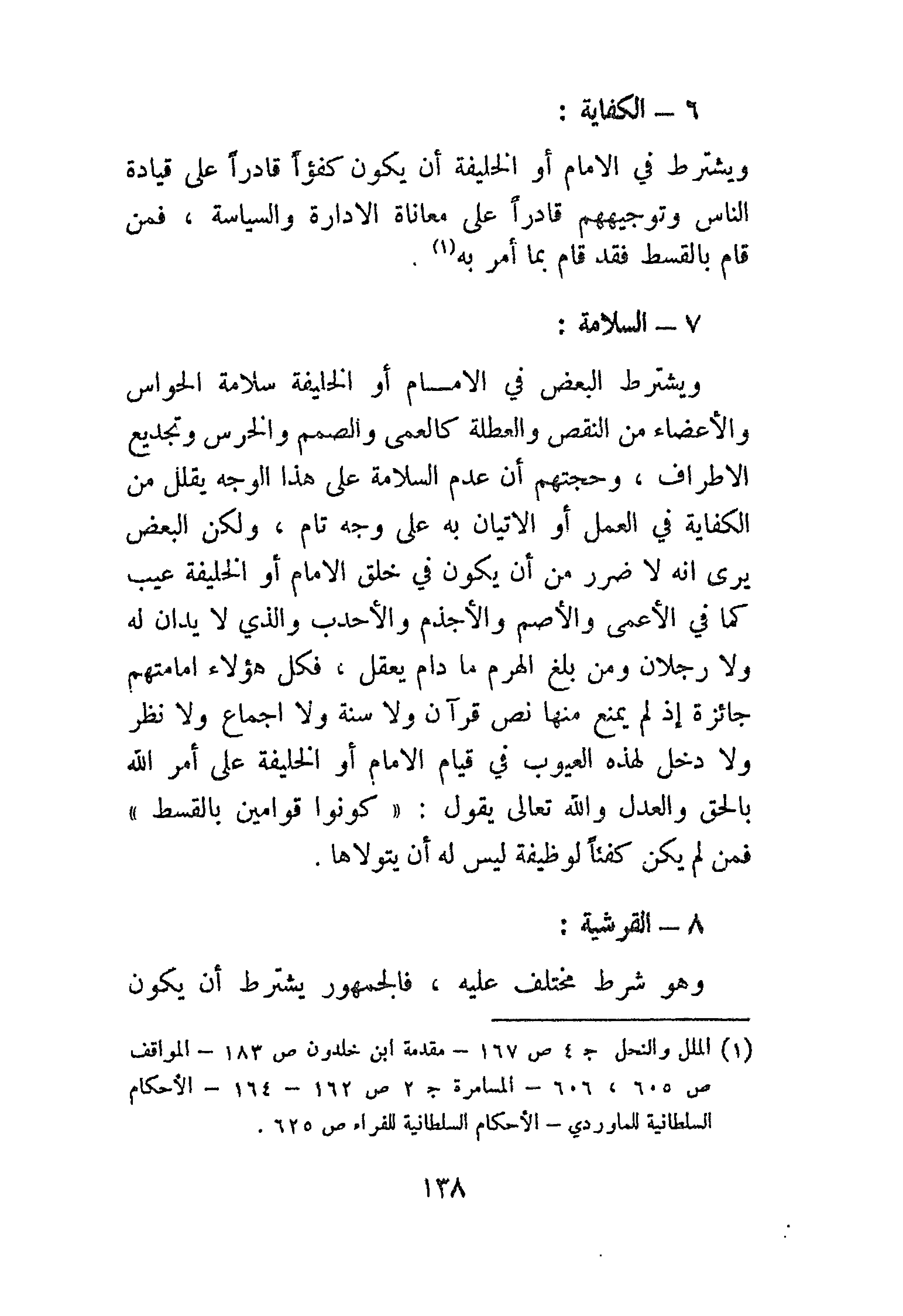 (¬1) " الملل والنحل ": جـ 4 ص 167، " مقدمة " ابن خلدون: ص 183، " المواقف ": ص 605، 606، " المسامرة ": جـ 2 ص 162 - 164، " الأحكام السلطانية " للماوردي، " الأحكام السلطانية " للفراء: ص 625.