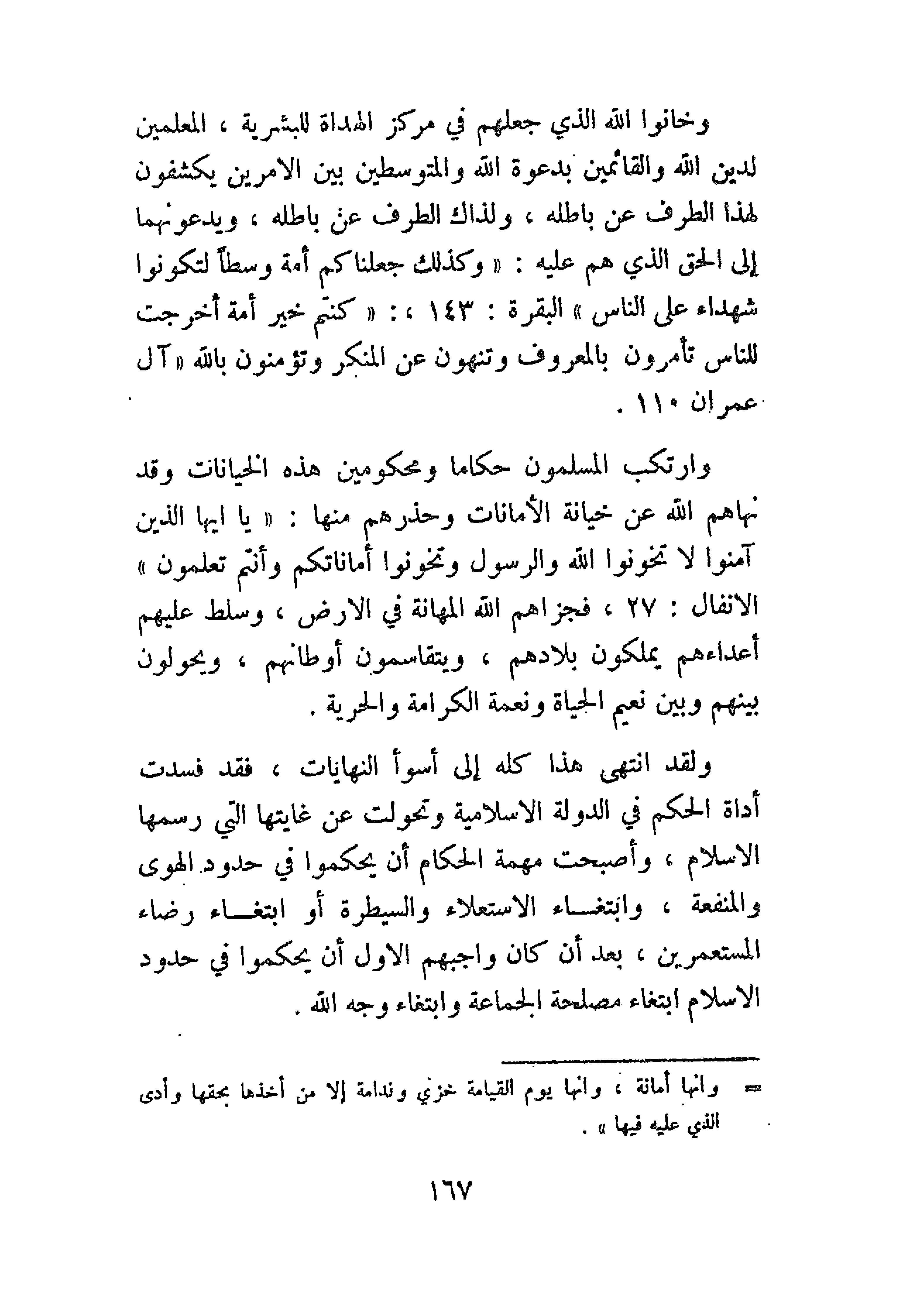 ولقد انتهى هذا كله إلى أسوأ النهايات، فقد فسدت أداة الحكم في الدولة الإسلامية وتحولت عن غايتها التي رسمها الإسلام، وأصبحت مهمة الحكام أن يحكموا في حدود الهوى والمنفعة، وابتغاء الاستعلاء والسيطرة أو ابتغاء رضاء المستعمرين، بعد أن كان واجبهم الأول أن يحكموا في حدود الإسلام ابتغاء مصلحة الجماعة وابتغاء وجه الله.