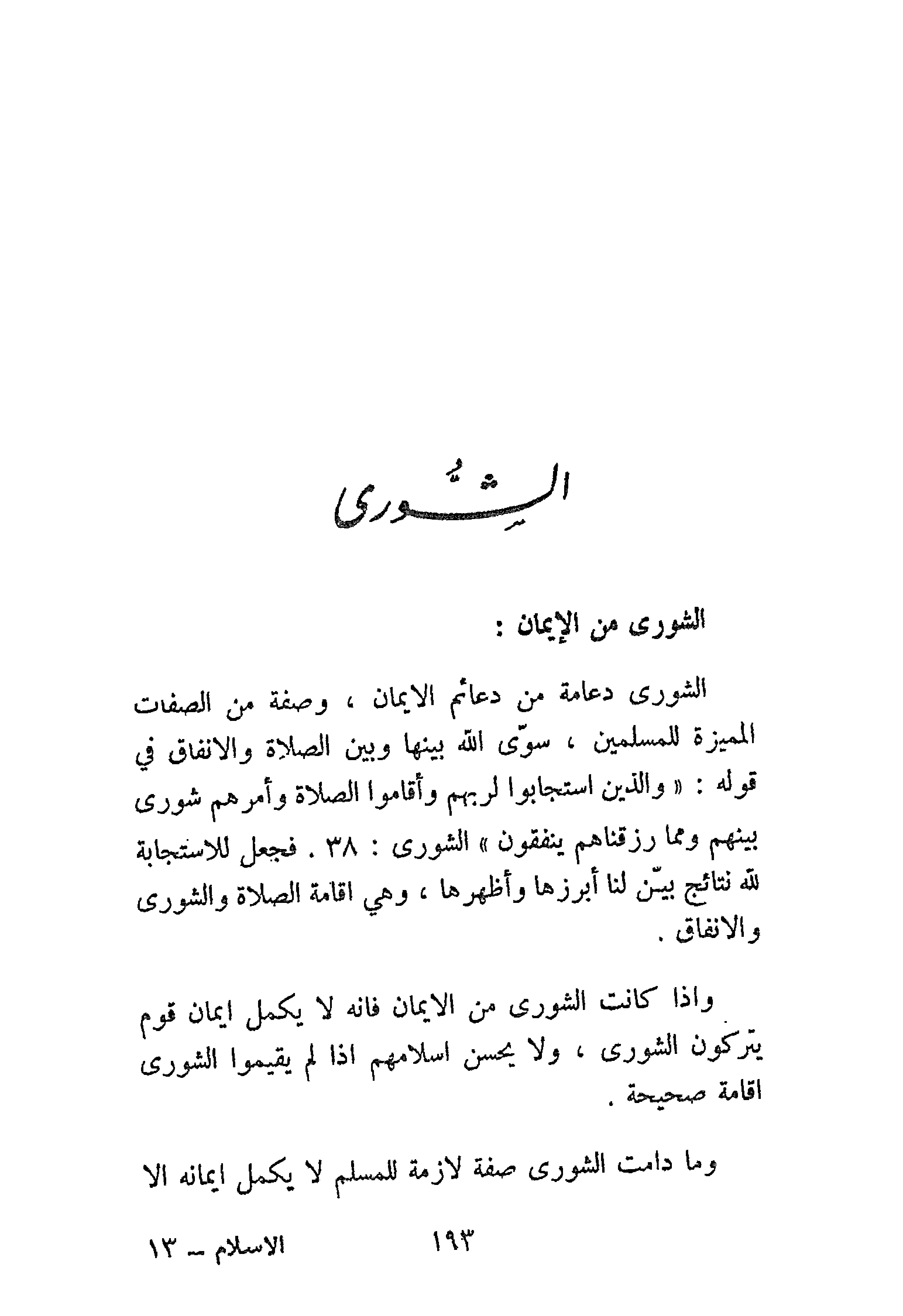 وما دامت الشورى صفة لازمة للمسلم لا يكمل إيمانه إلا