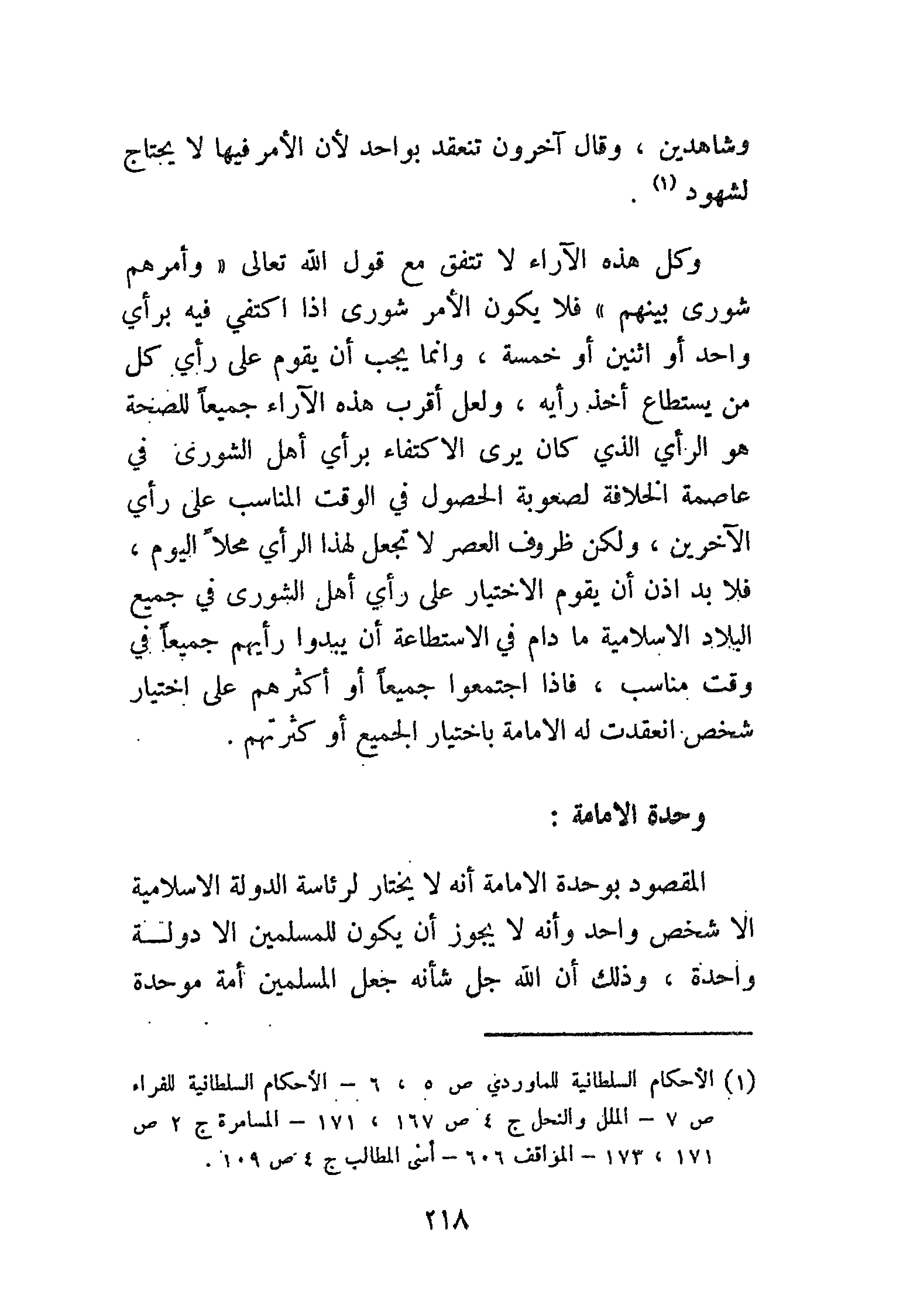 (¬1) " الأحكام السلطانية " للماوردي: ص 5، 6، " الأحكام السلطانية " للفراء: ص 7، " الملل والنحل ": جـ 4 ص 167، 171، " المسامرة ": جـ 2 ص 171، 173، " المواقف ": ص 606، " أسنى المطالب ": جـ 4 ص 109.