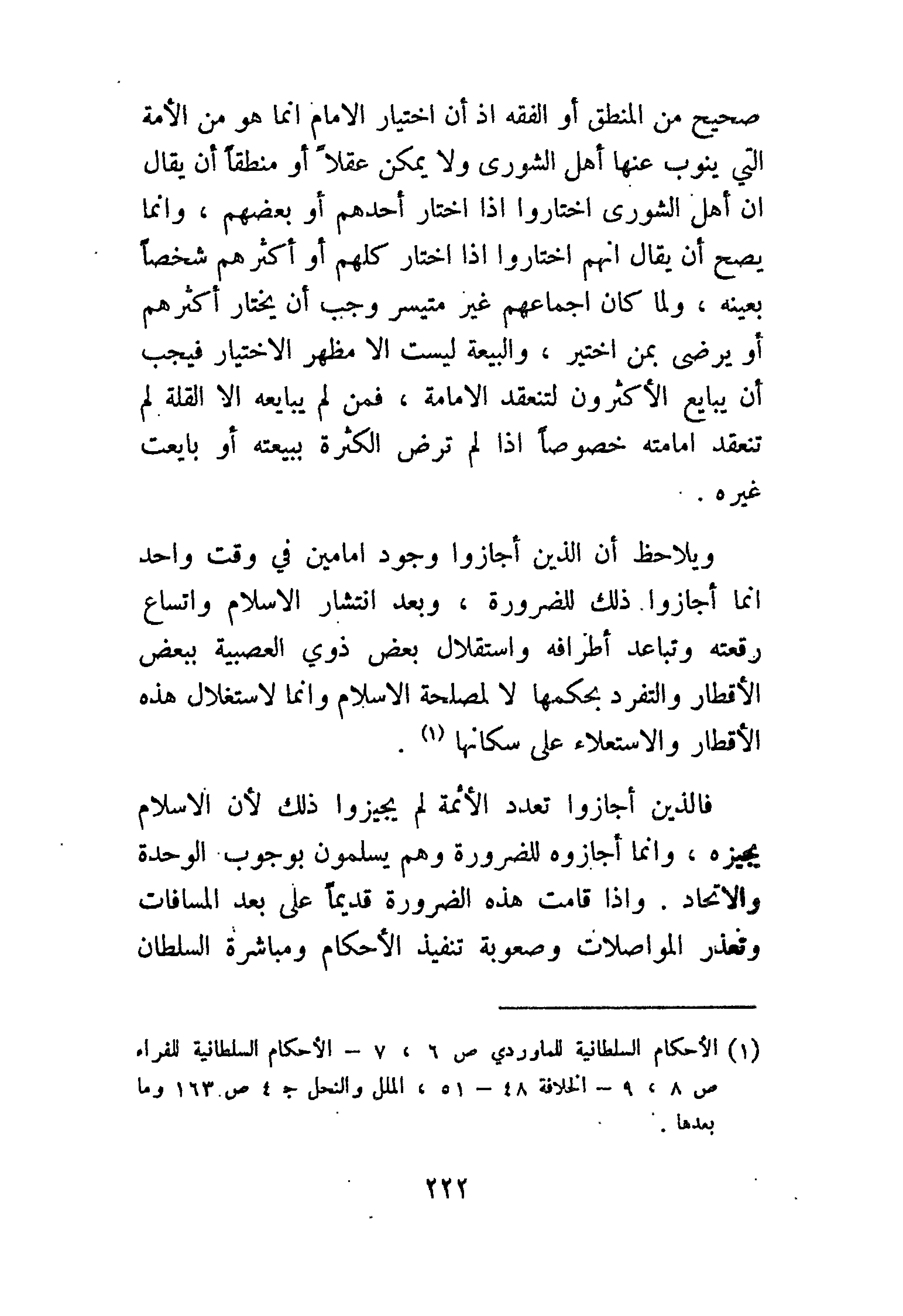 (¬1) " الأحكام السلطانية " للماوردي: ص 6، 7، " الأحكام السلطانية " للفراء: ص 8، 9، " الخلافة ": ص 48 - 51، " الملل والنحل ": جـ 4 ص 163 وما بعدها.