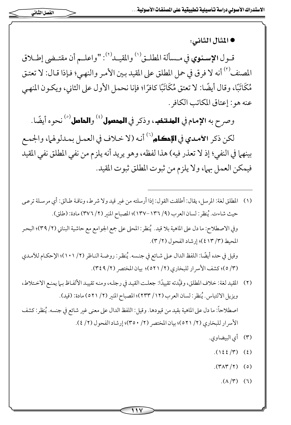 (٢) المقيد لغة: خلاف المطلق، وقيَّدته تقييدًا: جعلت القيد في رجله، ومنه تقييد الألفاظ بما يمنع الاختلاط، ويزيل الالتباس. يُنظر: لسان العرب (١٢/ ٢٣٣)؛ المصباح المنير (٢/ ٥٢١) مادة: (قيد).