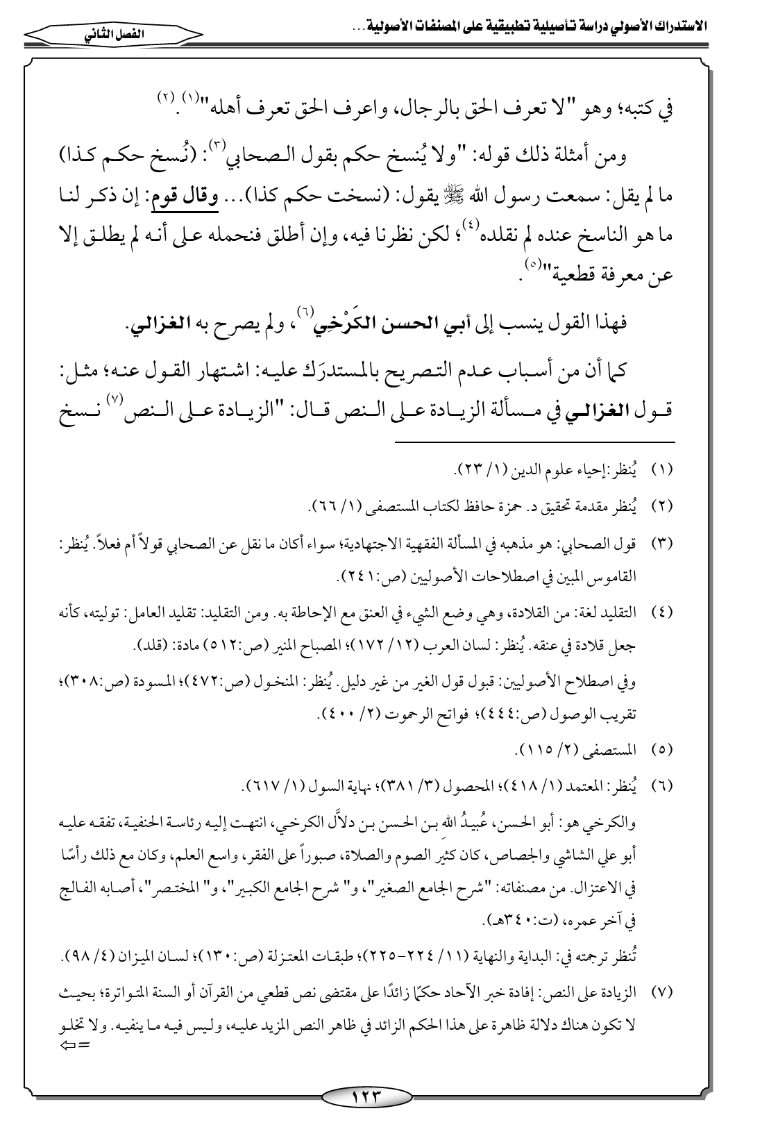 (٢) يُنظر مقدمة تحقيق د. حمزة حافظ لكتاب المستصفى (١/ ٦٦).