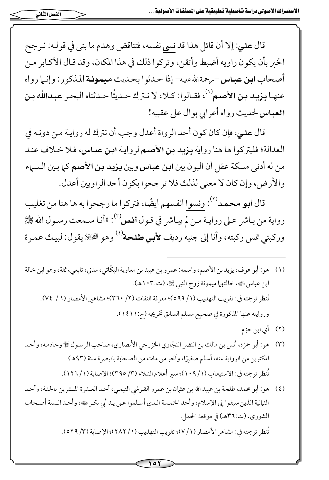 قال علي: إلا أن قائل هذا قد نسي نفسه، فتناقض وهدم ما بنى في قوله: نرجح الخبر بأن يكون راويه أضبط وأتقن، وتركوا ذلك في هذا المكان، وقد قال الأكابر من أصحاب ابن عباس -رحمة الله عليه- إذا حدثوا بحديث ميمونة المذكور: وإنما رواه عنها يزيد بن الأصم (١)، فقالوا: كلا، لا نترك حديثًا حدثناه البحر عبدالله بن العباس لحديث رواه أعرابي بوال على عقبيه!