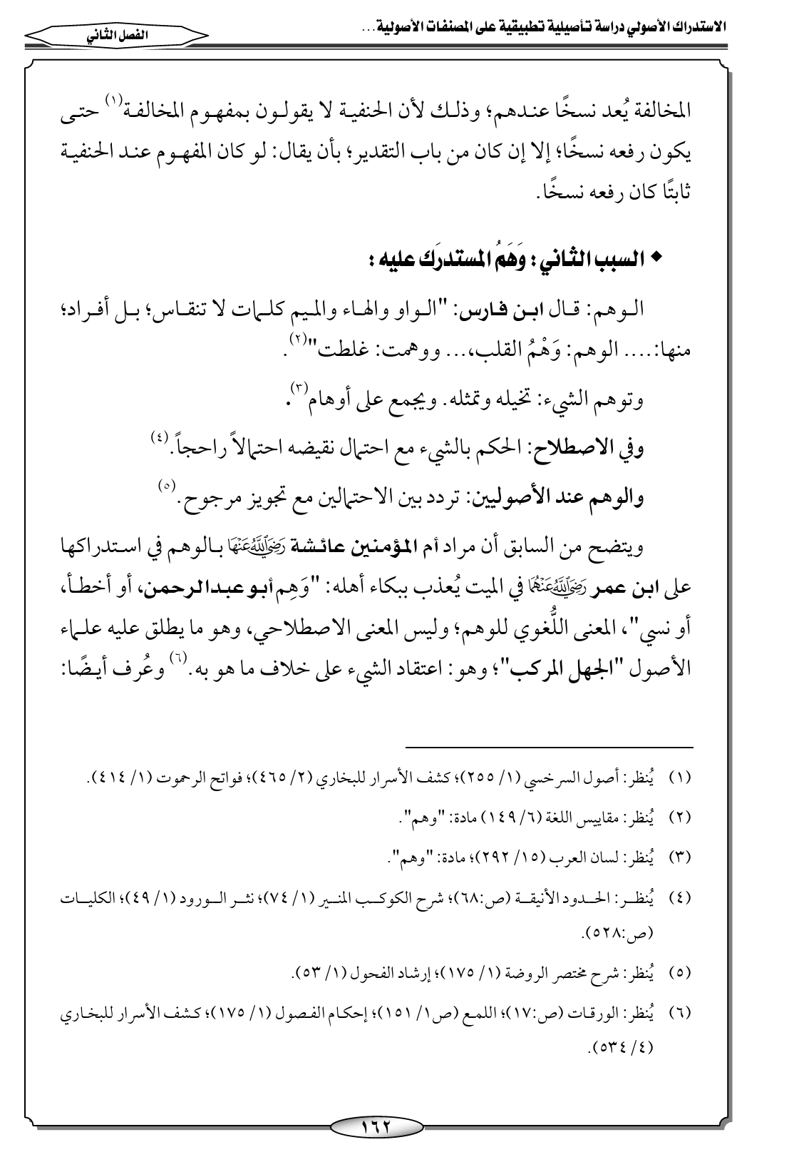 ويتضح من السابق أن مراد أم المؤمنين عائشة - رضي الله عنها - بالوهم في استدراكها على ابن عمر - رضي الله عنهما - في الميت يُعذب ببكاء أهله: "وَهِم أبو عبدالرحمن، أو أخطأ، أو نسي"، المعنى اللُّغوي للوهم؛ وليس المعنى الاصطلاحي، وهو ما يطلق عليه علماء الأصول "الجهل المركب"؛ وهو: اعتقاد الشيء على خلاف ما هو به. (٦) وعُرف أيضًا: