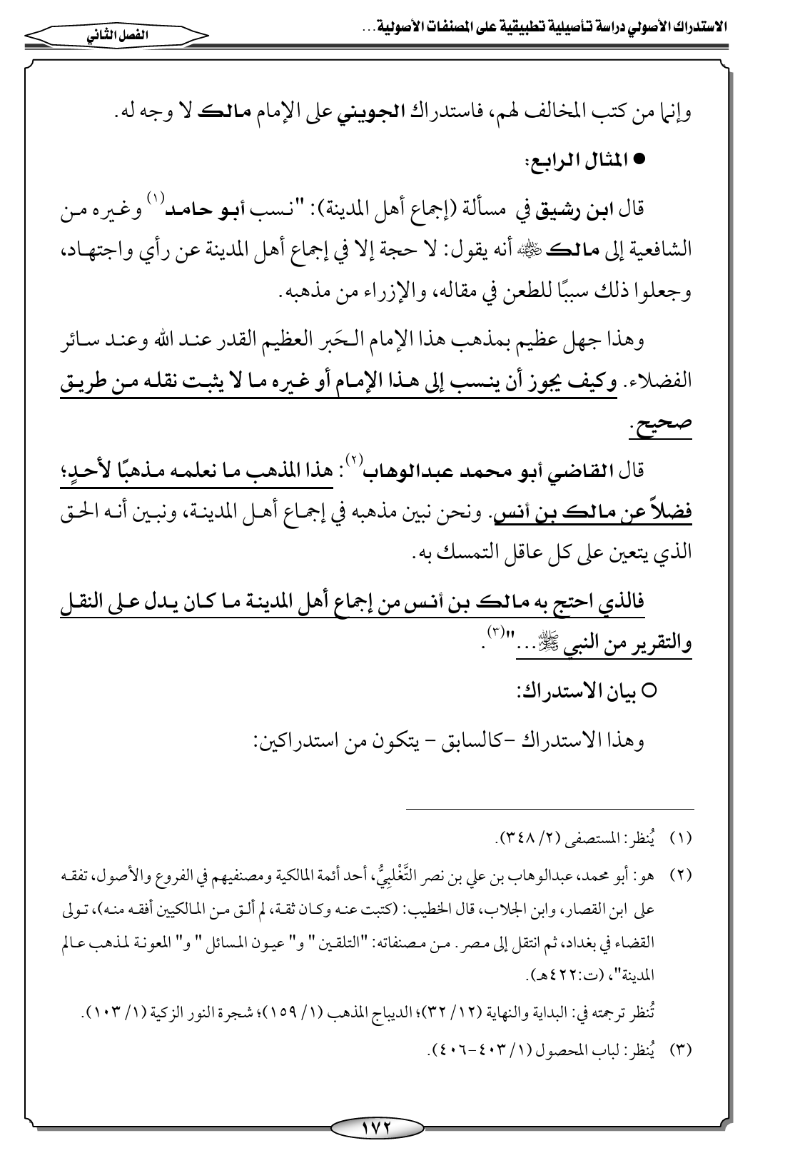 قال القاضي أبو محمد عبدالوهاب (٢): هذا المذهب ما نعلمه مذهبًا لأحدٍ؛ فضلاً عن مالك بن أنس. ونحن نبين مذهبه في إجماع أهل المدينة، ونبين أنه الحق الذي يتعين على كل عاقل التمسك به.