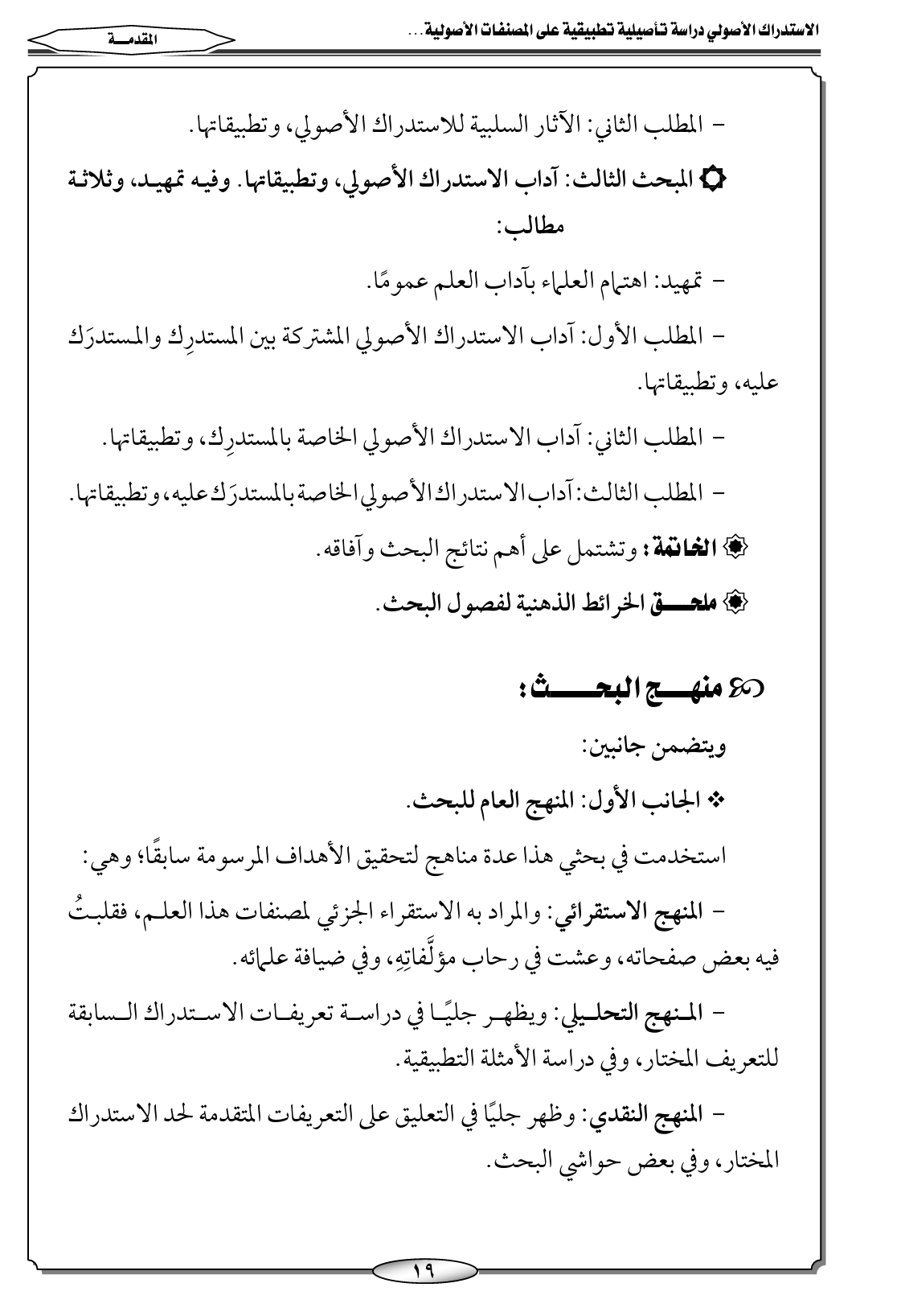 - المنهج النقدي: وظهر جليًا في التعليق على التعريفات المتقدمة لحد الاستدراك المختار، وفي بعض حواشي البحث.