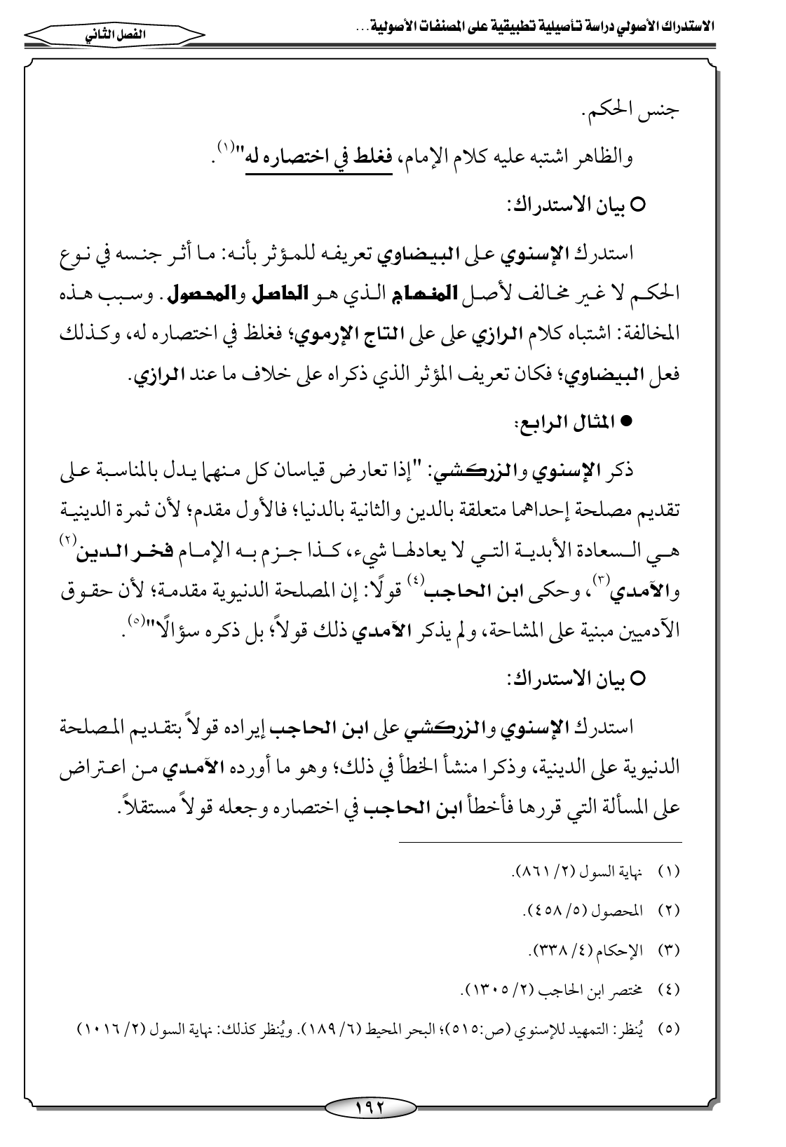 (٥) يُنظر: التمهيد للإسنوي (ص: ٥١٥)؛ البحر المحيط (٦/ ١٨٩). ويُنظر كذلك: نهاية السول (٢/ ١٠١٦)