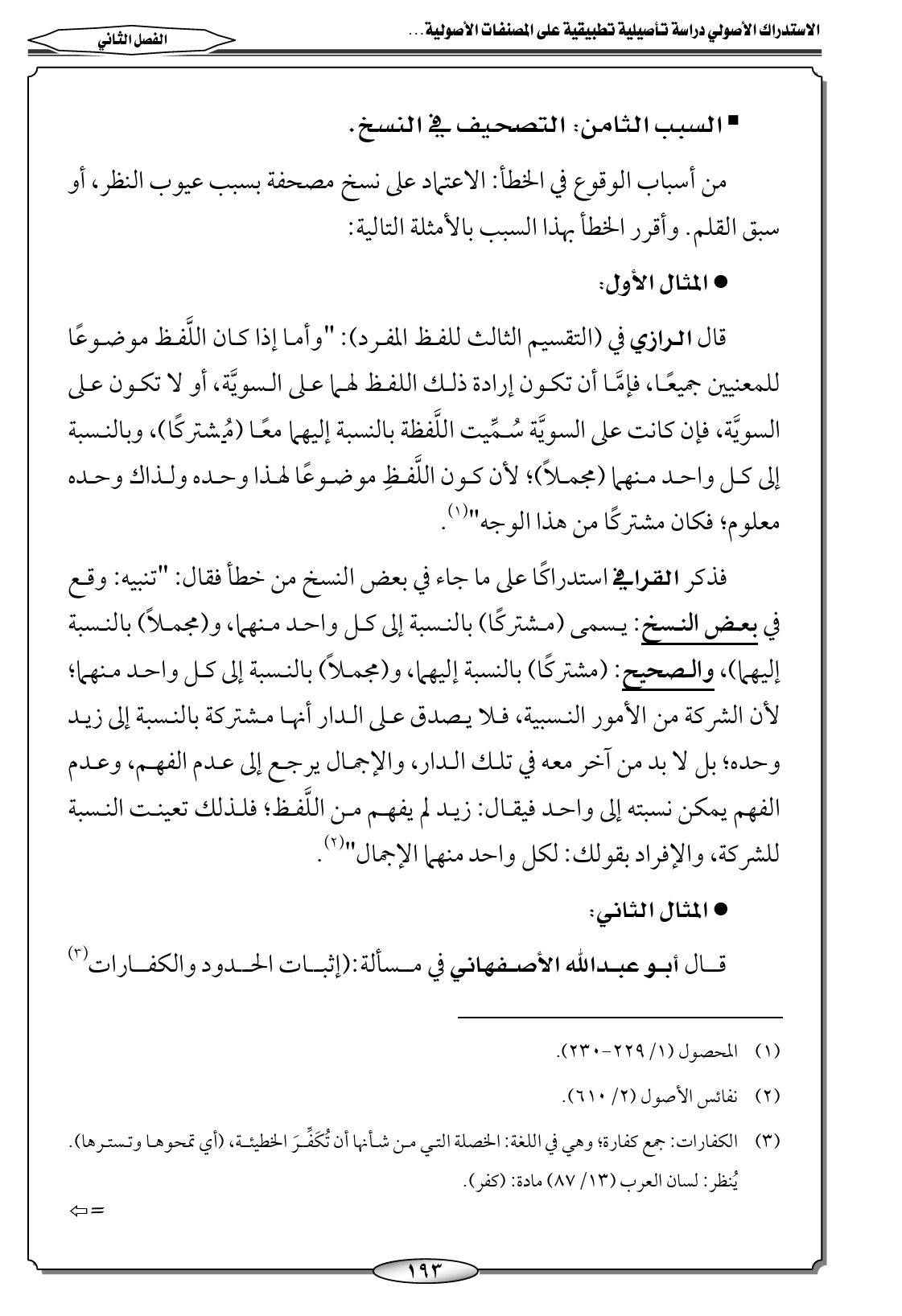 (٢) نفائس الأصول (٢/ ٦١٠).