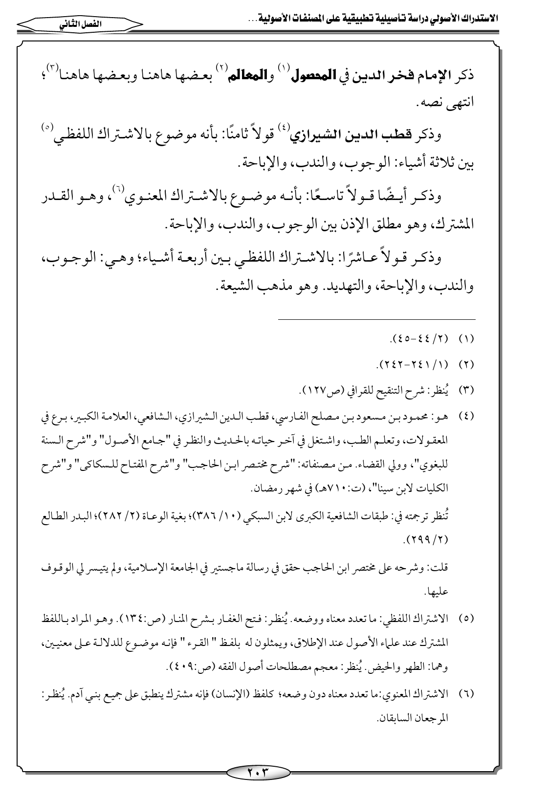 (٥) الاشتراك اللفظي: ما تعدد معناه ووضعه. يُنظر: فتح الغفار بشرح المنار (ص: ١٣٤). وهو المراد باللفظ المشترك عند علماء الأصول عند الإطلاق، ويمثلون له بلفظ " القرء " فإنه موضوع للدلالة على معنيين، وهما: الطهر والحيض. يُنظر: معجم مصطلحات أصول الفقه (ص: ٤٠٩).