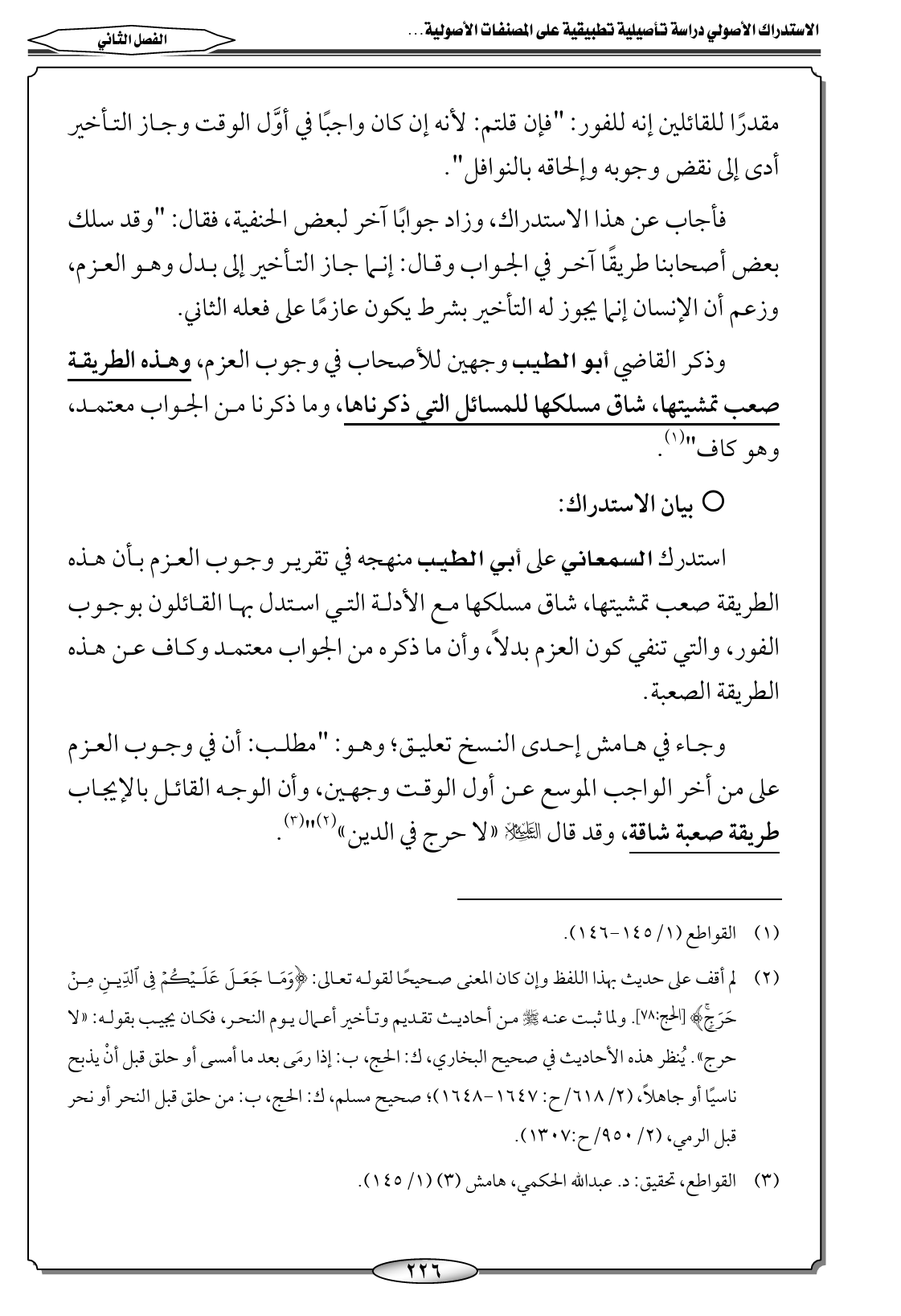 (٣) القواطع، تحقيق: د. عبدالله الحكمي، هامش (٣) (١/ ١٤٥).