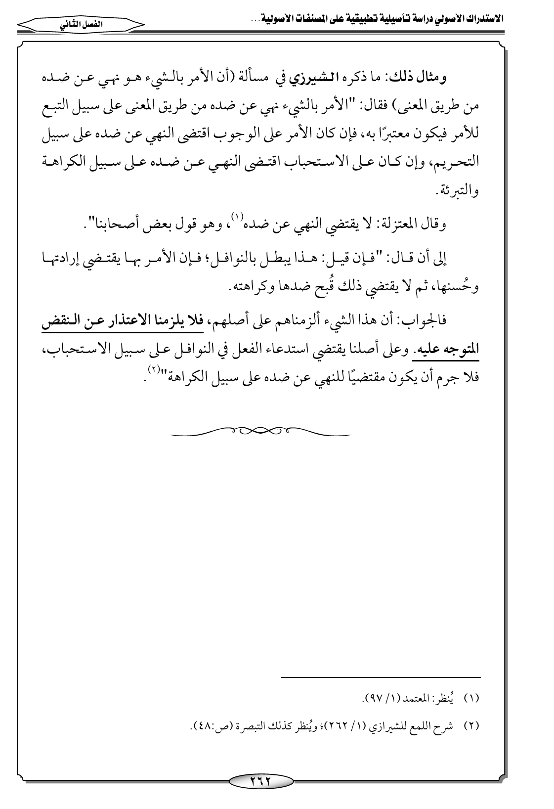 (٢) شرح اللمع للشيرازي (١/ ٢٦٢)؛ ويُنظر كذلك التبصرة (ص: ٤٨).