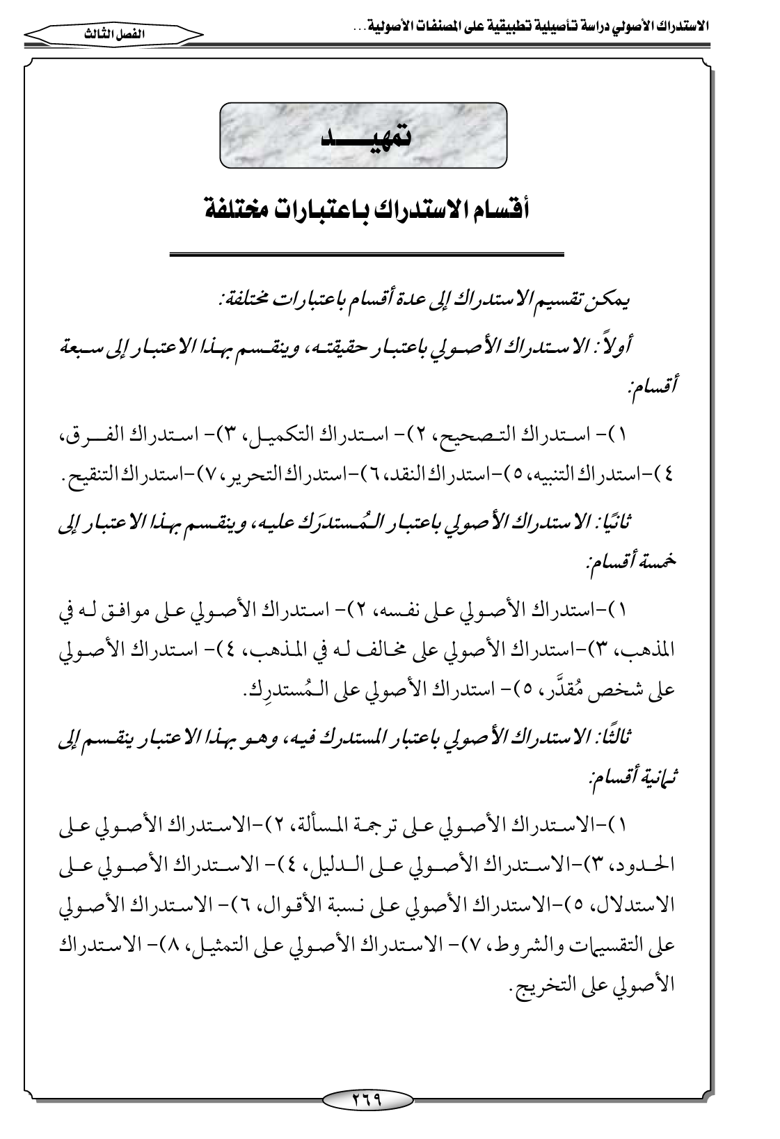 ثالثًا: الاستدراك الأصولي باعتبار المستدرك فيه، وهو بهذا الاعتبار ينقسم إلى ثمانية أقسام: