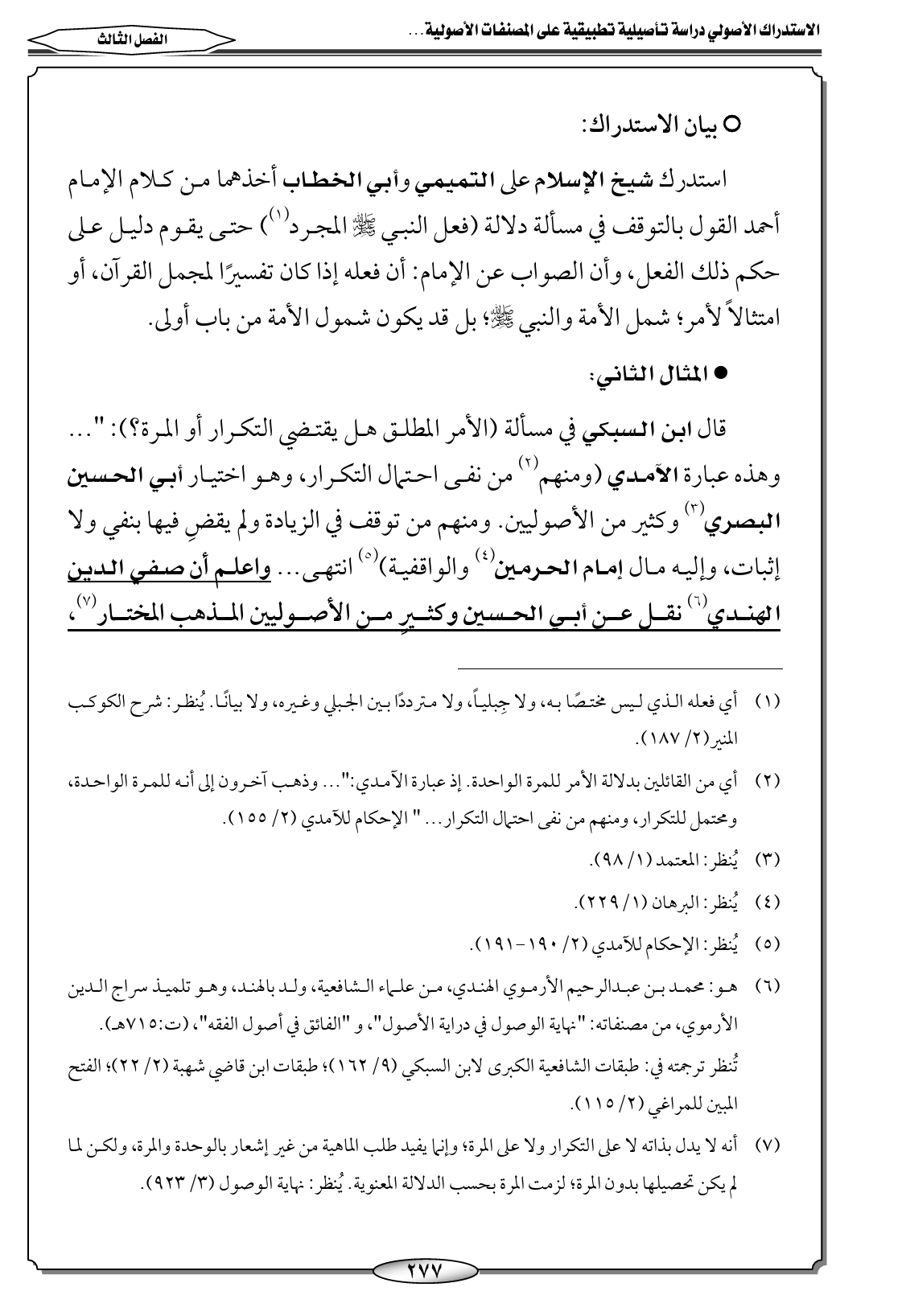 (٦) هو: محمد بن عبدالرحيم الأرموي الهندي، من علماء الشافعية، ولد بالهند، وهو تلميذ سراج الدين الأرموي، من مصنفاته: "نهاية الوصول في دراية الأصول"، و "الفائق في أصول الفقه"، (ت: ٧١٥ هـ).
