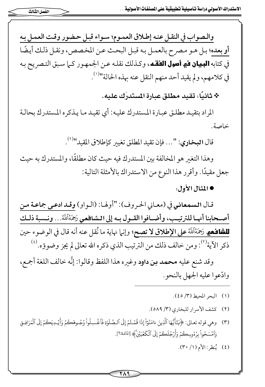 • ثانيًا: تقيد مطلق عبارة المستدرَك عليه.