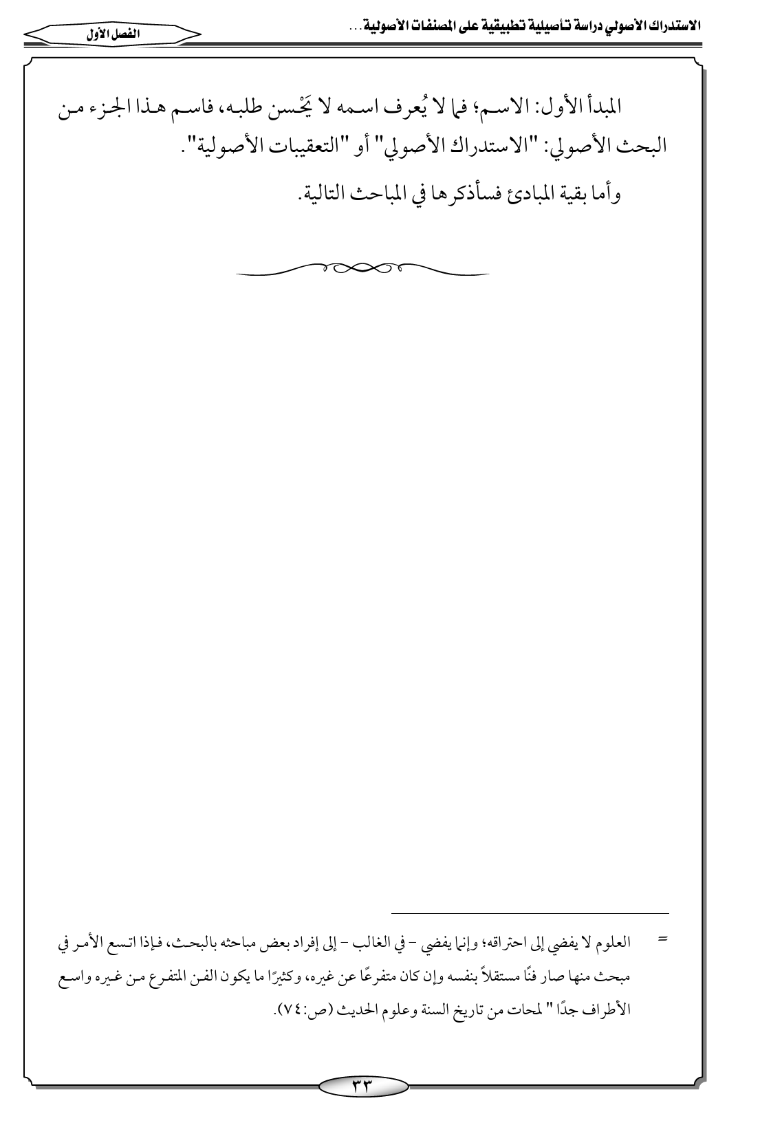 المبدأ الأول: الاسم؛ فما لا يُعرف اسمه لا يَحْسن طلبه، فاسم هذا الجزء من البحث الأصولي: "الاستدراك الأصولي" أو "التعقيبات الأصولية".