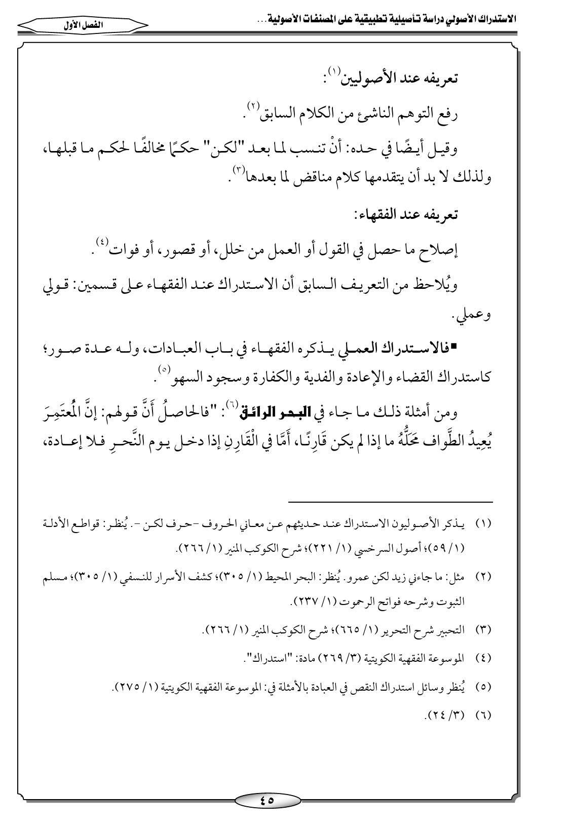 (٤) الموسوعة الفقهية الكويتية (٣/ ٢٦٩) مادة: "استدراك".