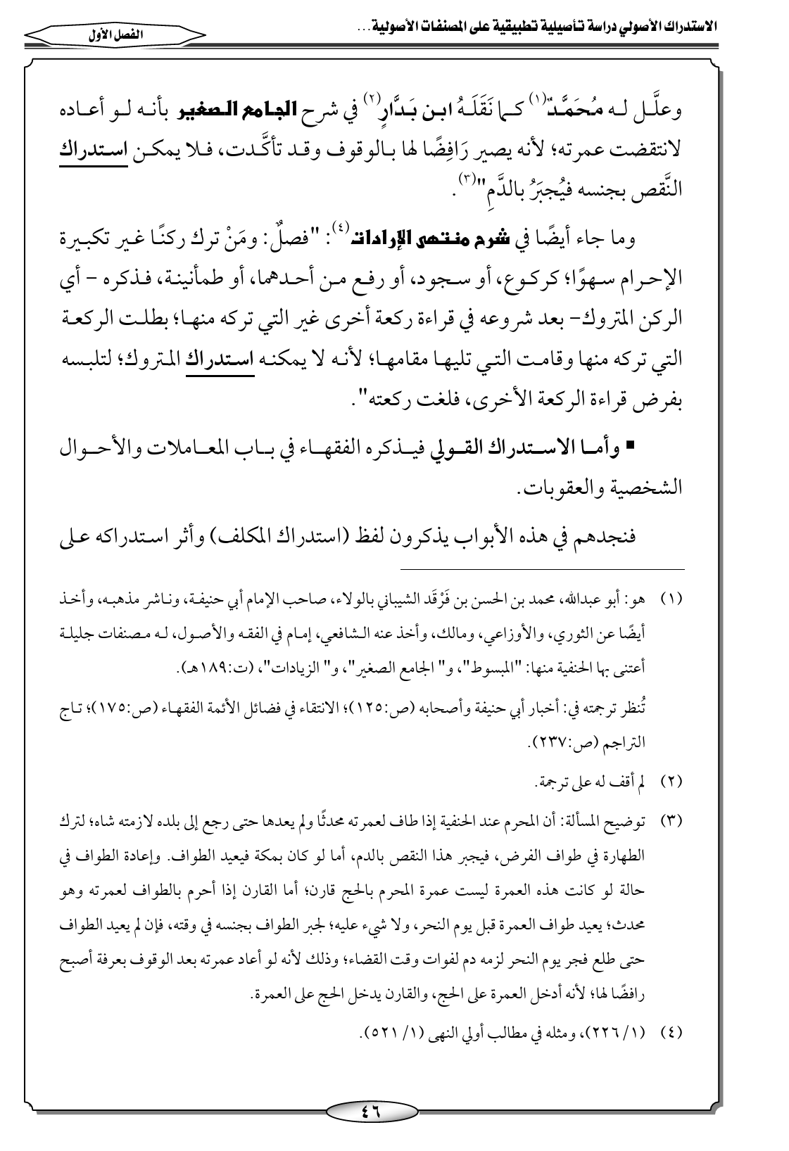 • وأما الاستدراك القولي فيذكره الفقهاء في باب المعاملات والأحوال الشخصية والعقوبات.