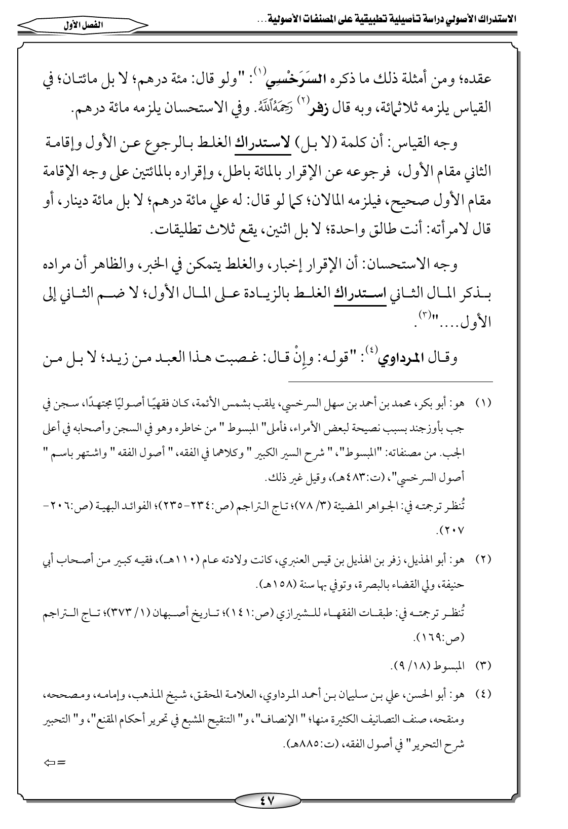 (١) هو: أبو بكر، محمد بن أحمد بن سهل السرخسي، يلقب بشمس الأئمة، كان فقهيًا أصوليًا مجتهدًا، سجن في جب بأوزجند بسبب نصيحة لبعض الأمراء، فأملى" المبسوط " من خاطره وهو في السجن وأصحابه في أعلى الجب. من مصنفاته: "المبسوط"، " شرح السير الكبير " وكلاهما في الفقه، " أصول الفقه " واشتهر باسم " أصول السرخسي"، (ت: ٤٨٣ هـ)، وقيل غير ذلك.