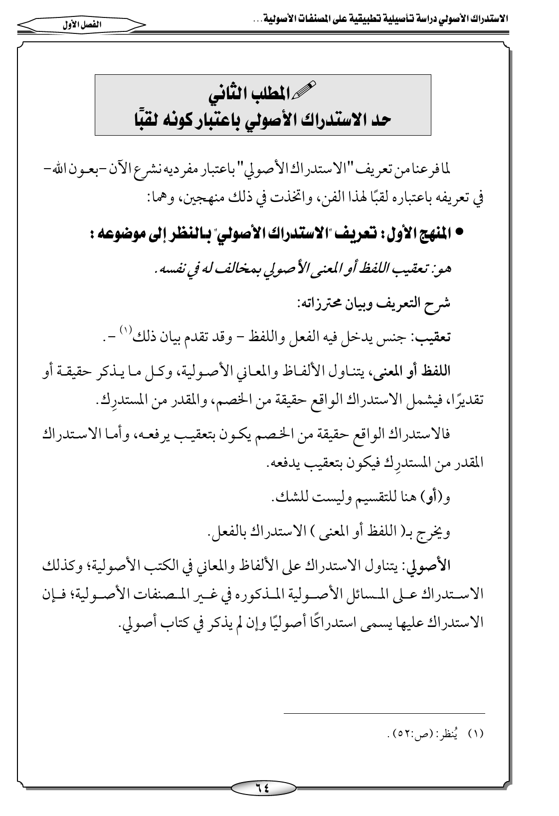 حد الاستدراك الأصولي باعتبار كونه لقبًا